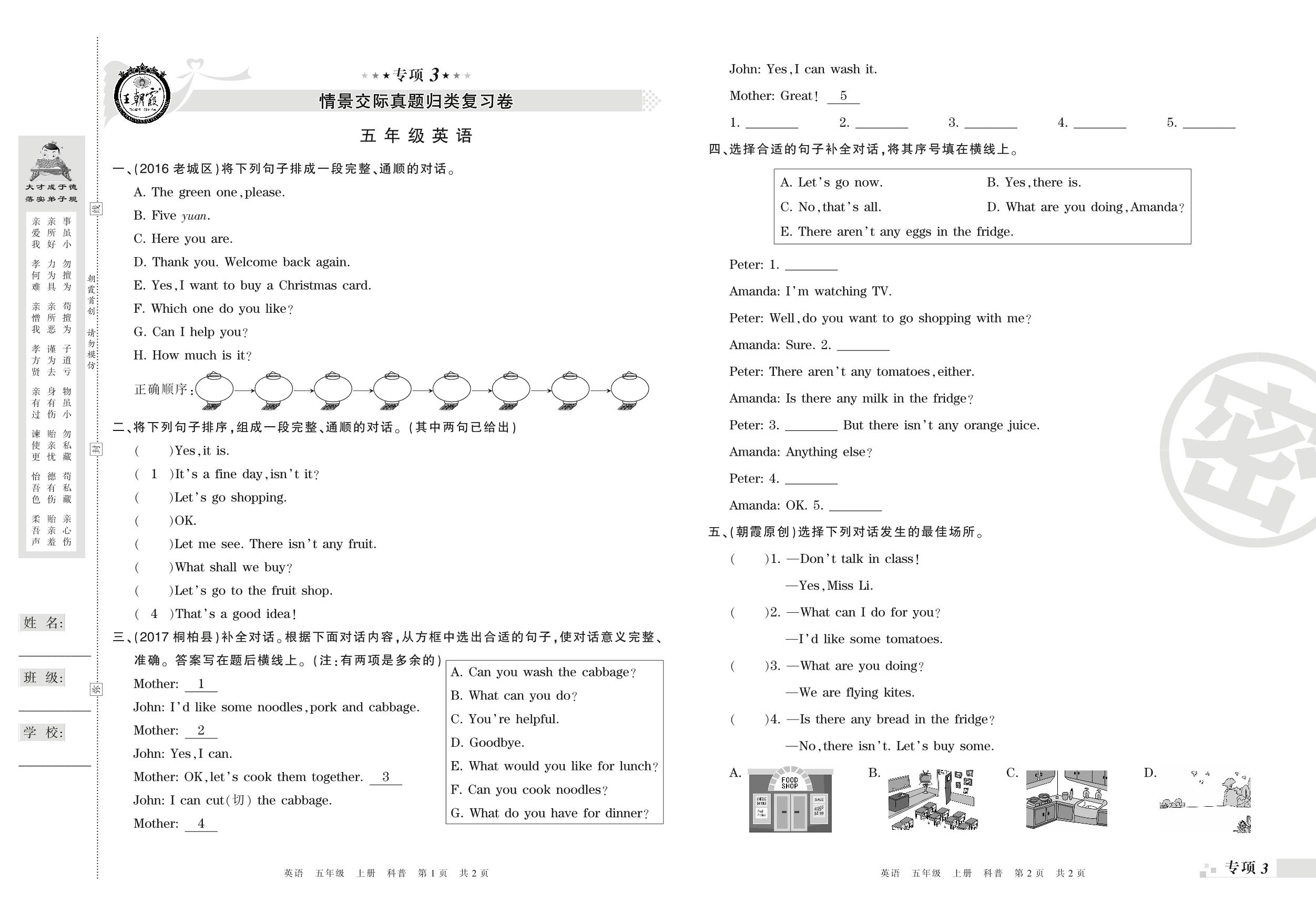 王朝霞期末专项卷——情景交际、阅读理解真题归类复习五年级上册英语(科普版)_R210807152515【0】
