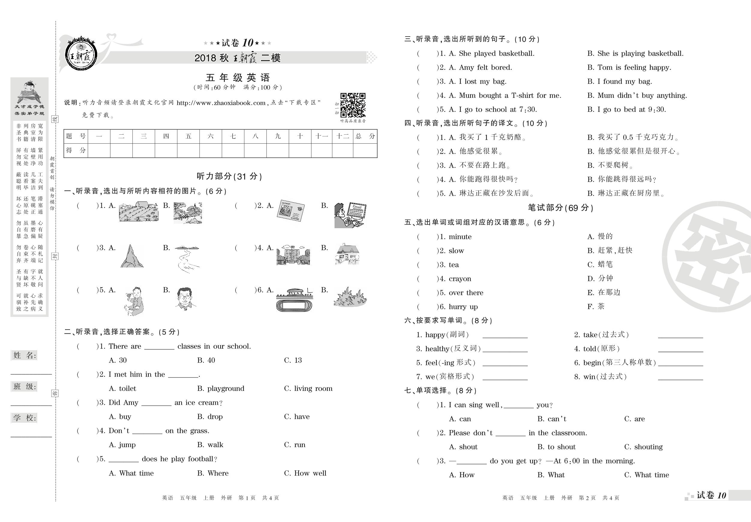 王朝霞期末模拟卷五年级上册英语(外研版)_R210807152624【10】