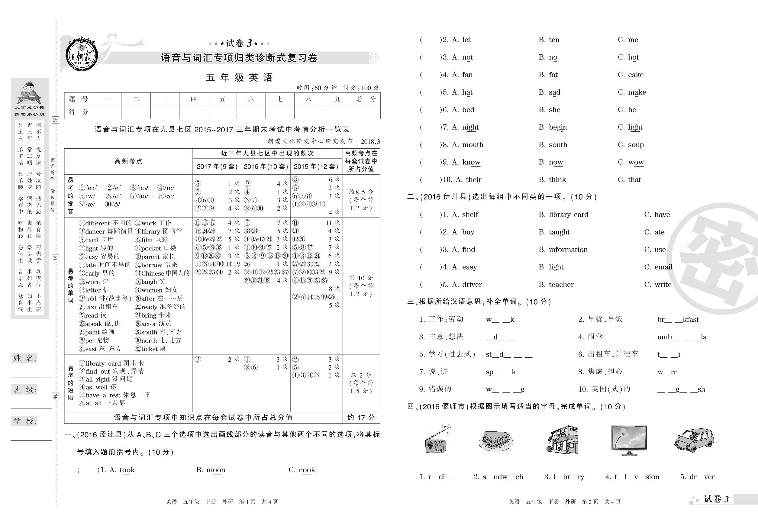 王朝霞期末专项卷——语音与词汇专项归类诊断式复习卷五年级下册英语(外研版)【3】