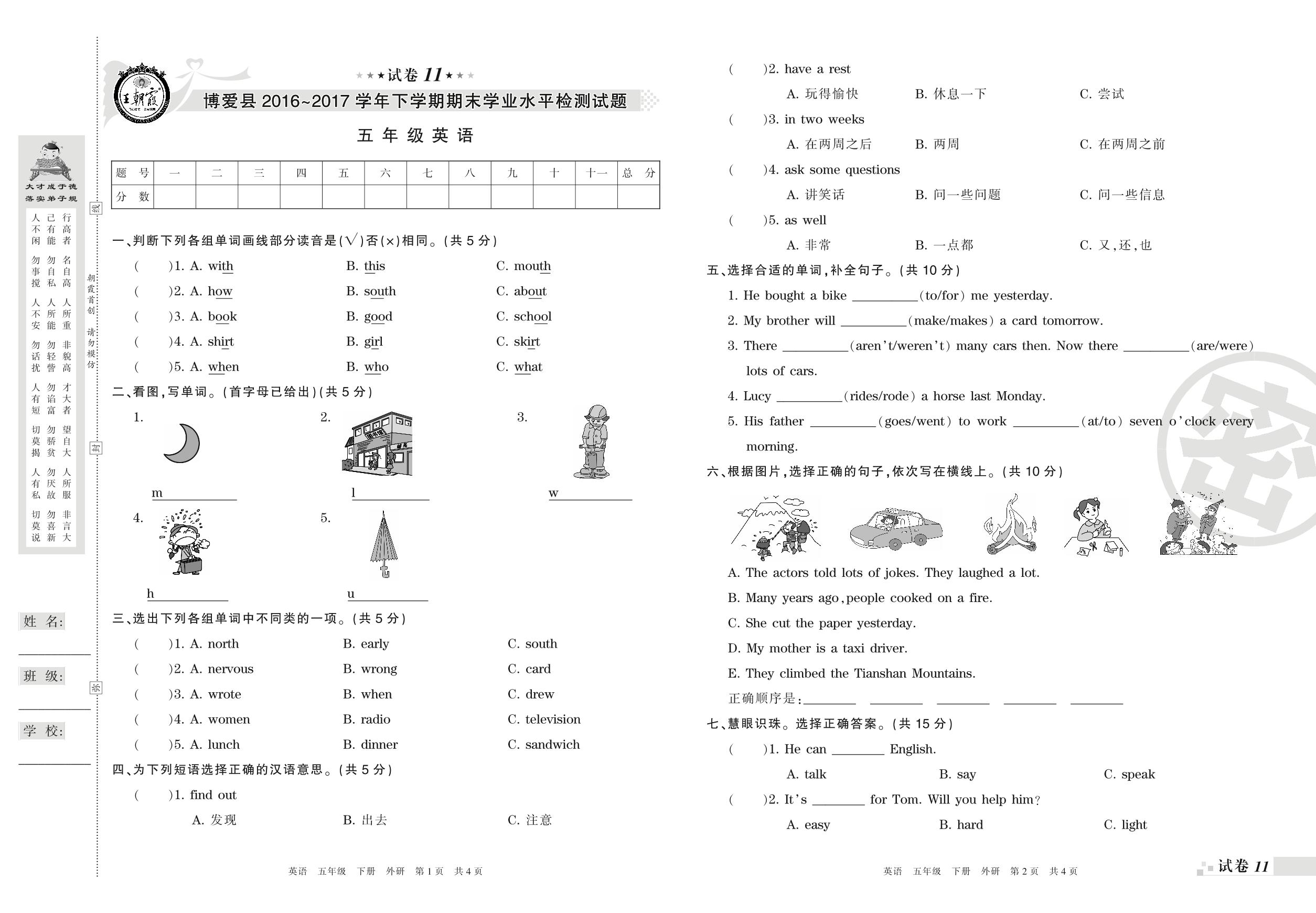 2016-2017学年第二学期焦作市博爱县五年级英语试卷(外研版)【11】