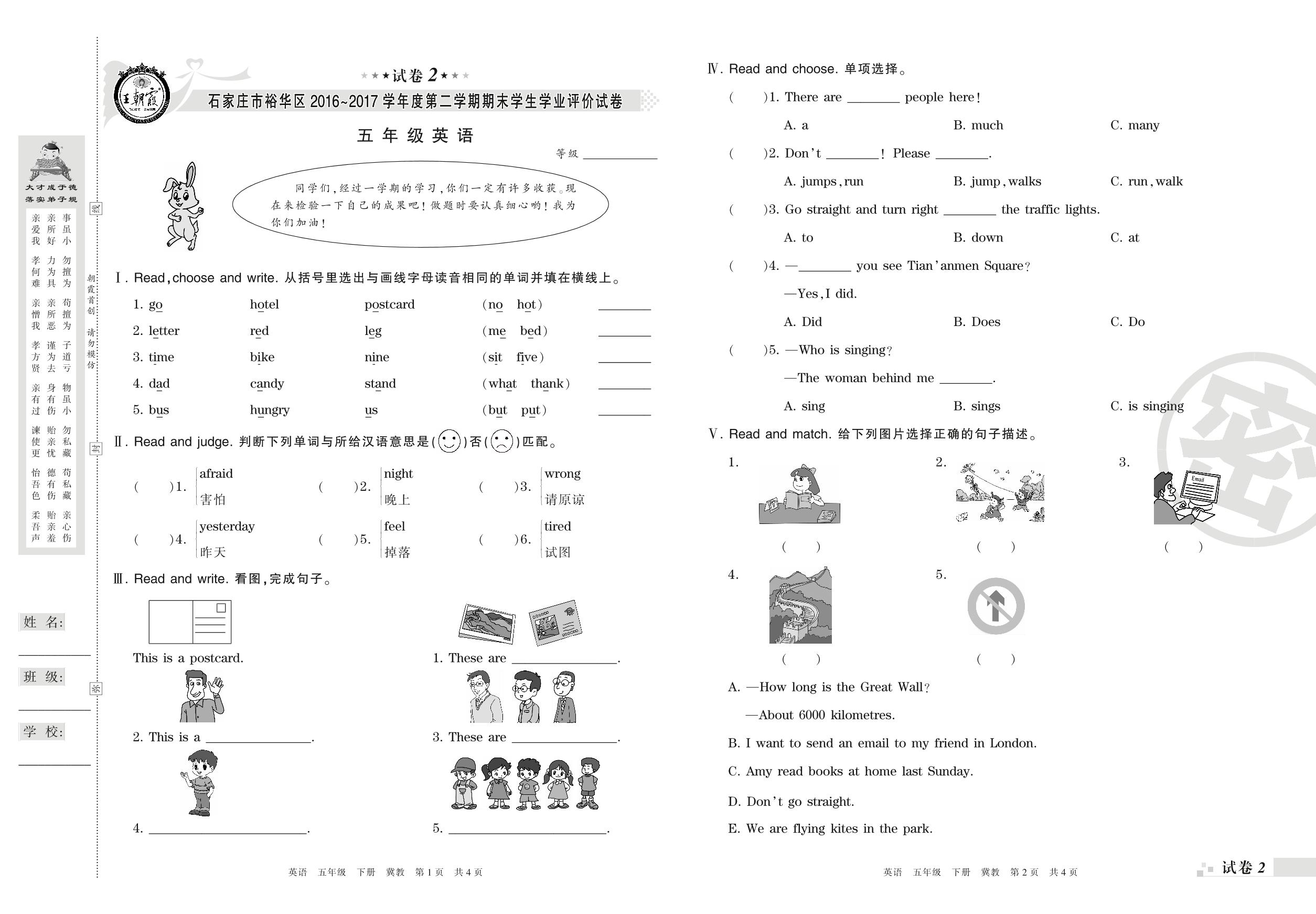 2016-2017学年第二学期石家庄市裕华区五年级英语试卷(冀教版)【2】
