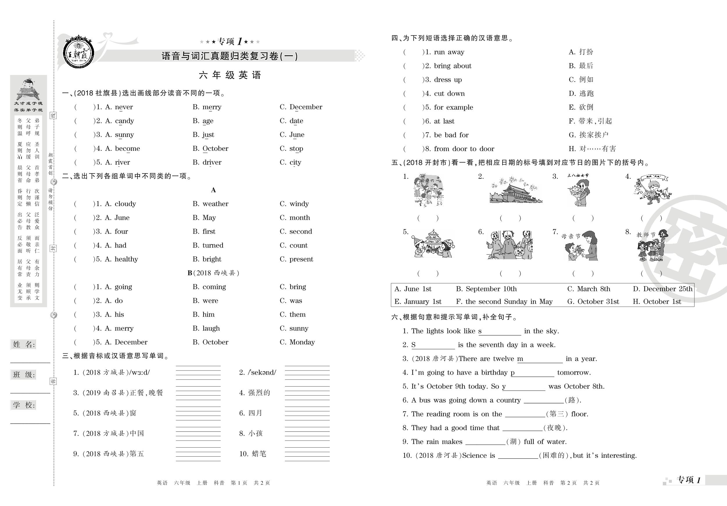 王朝霞期末专项卷——语音与词汇真题归类复习六年级上册英语(科普版)_R210807154307【0】