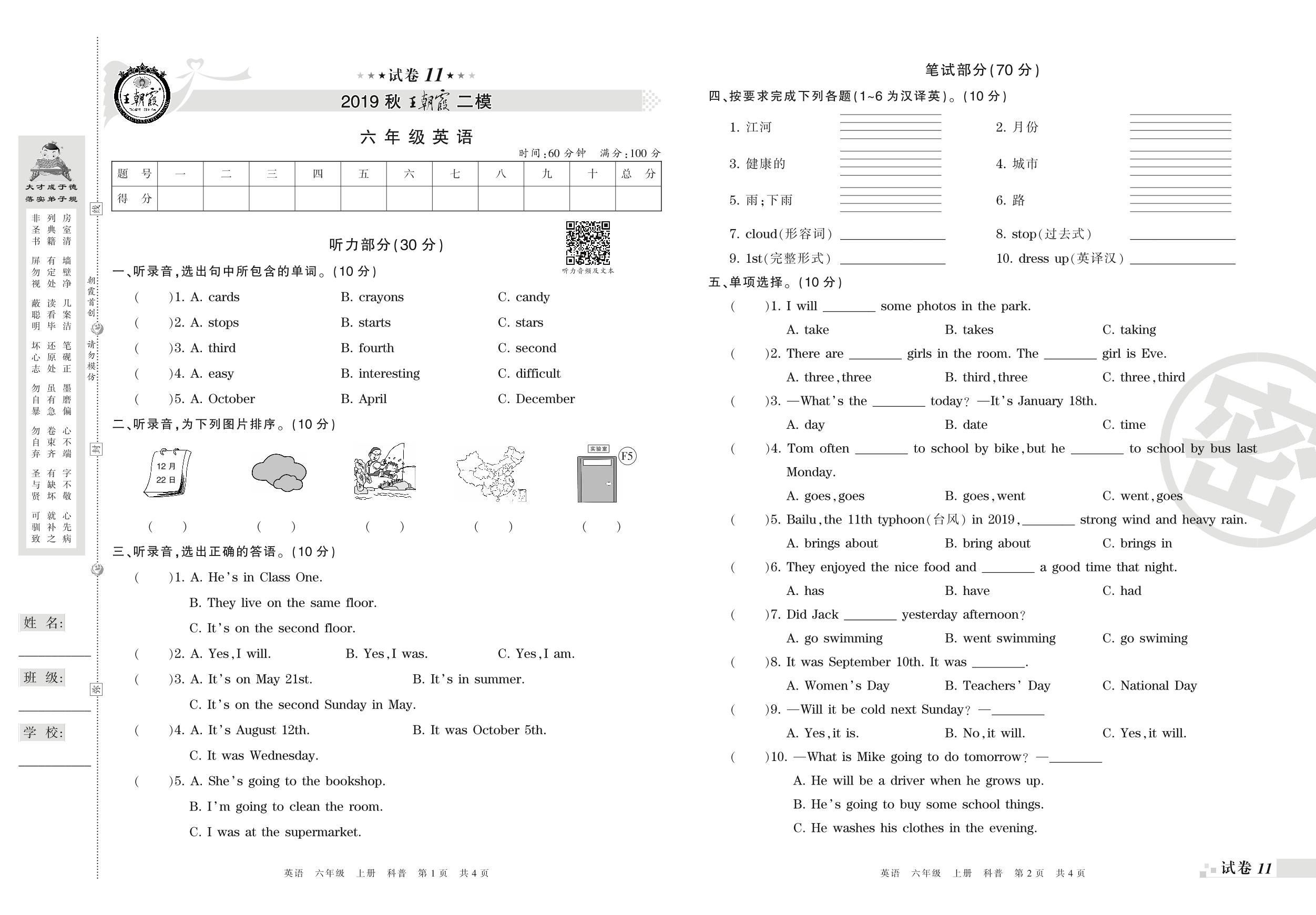 王朝霞期末模拟卷六年级上册英语(科普版)_R210807154357【11】