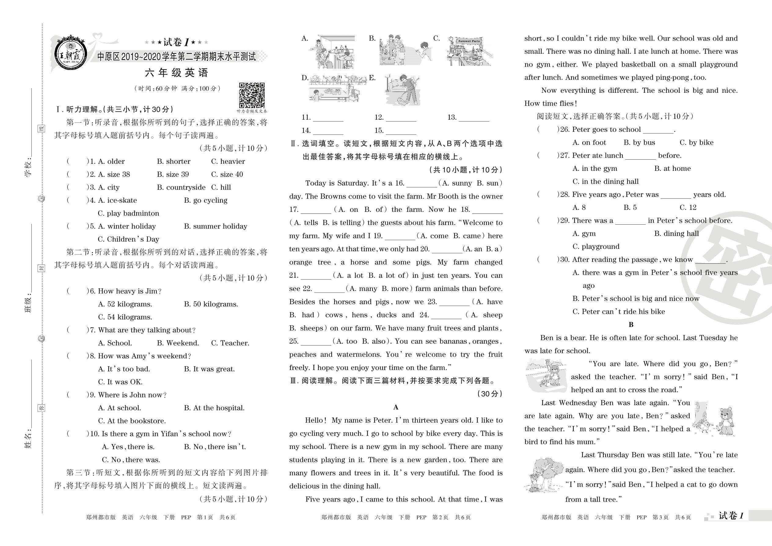 2019-2020学年第二学期郑州市中原区六年级英语试卷(PEP版)_R210807154455【1】