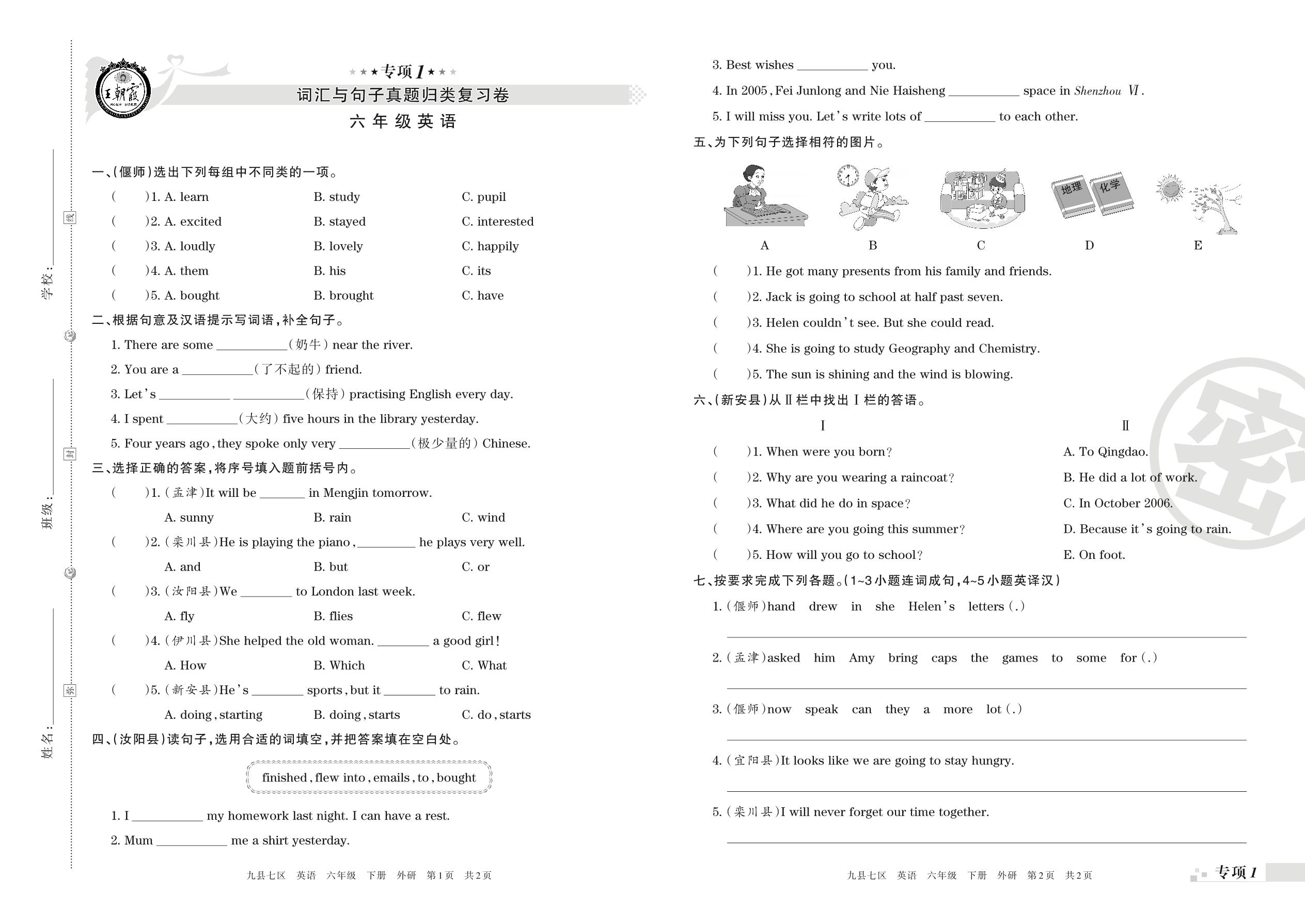 王朝霞期末专项卷——词汇与句子、阅读理解真题归类复习六年级下册英语(外研版)_R210807154719【0】