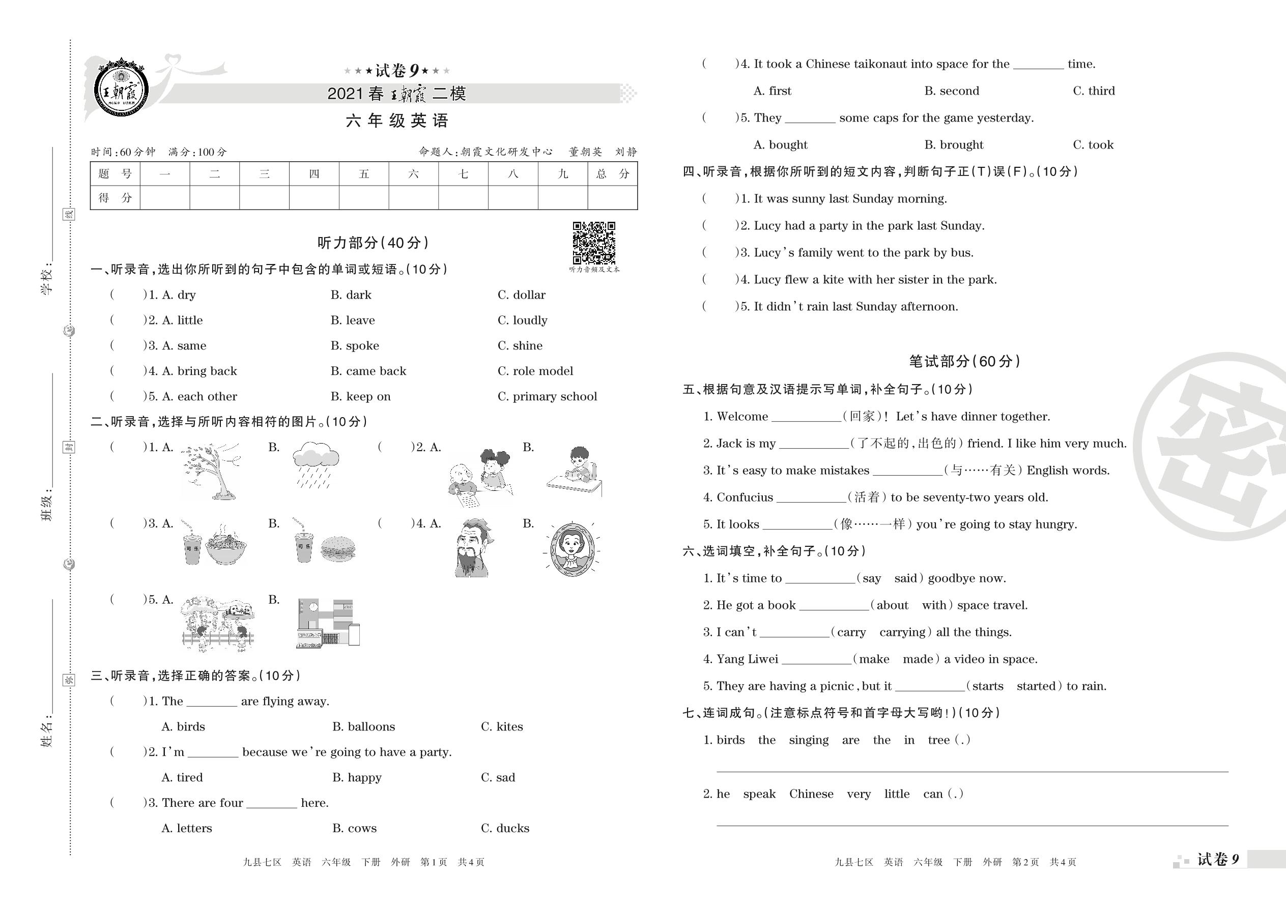 王朝霞期末模拟卷六年级下册英语(外研版)_R210807154825【9】