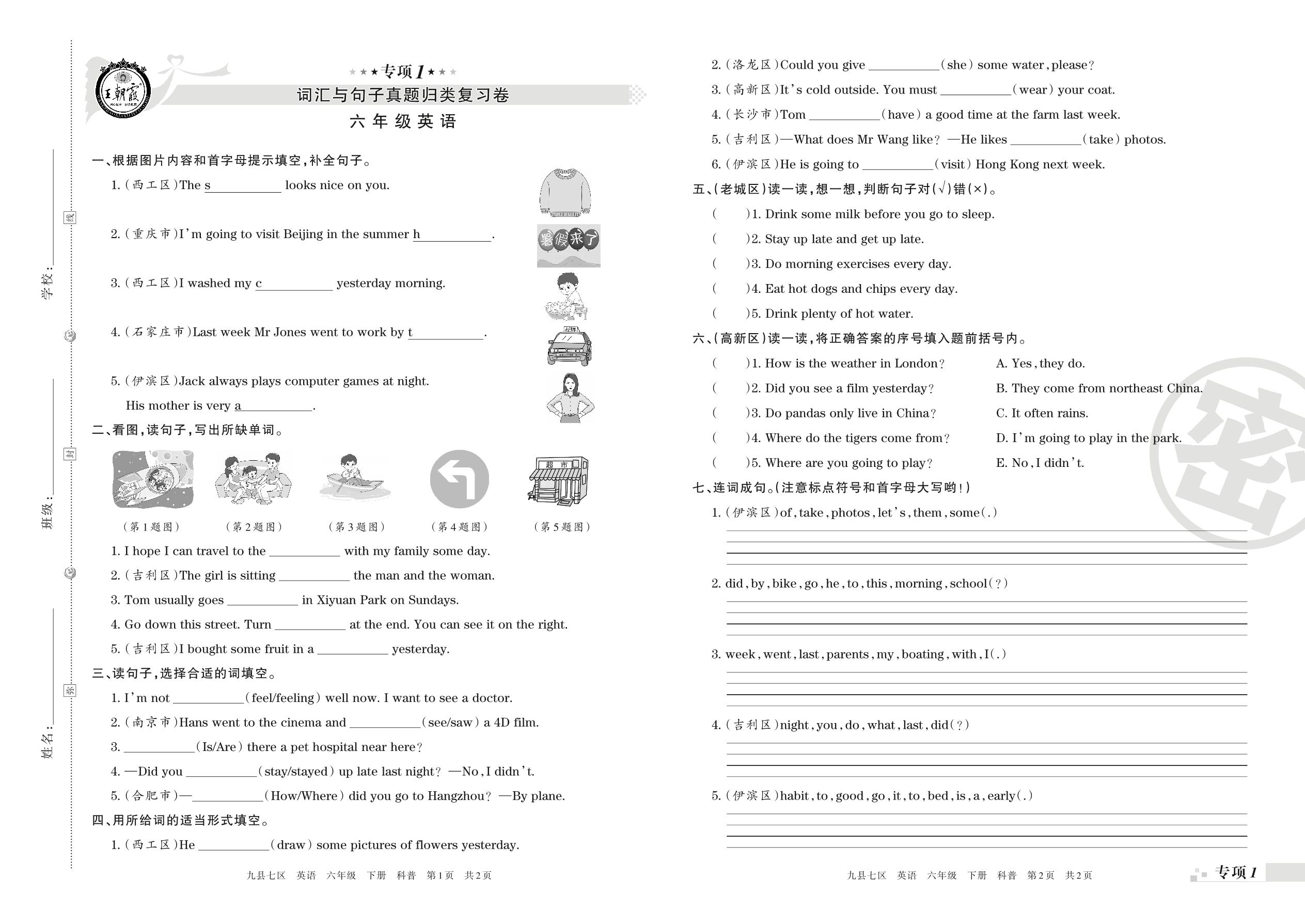 王朝霞期末专项卷——词汇与句子、阅读理解真题归类复习六年级下册英语(科普版)_R210807154843【0】