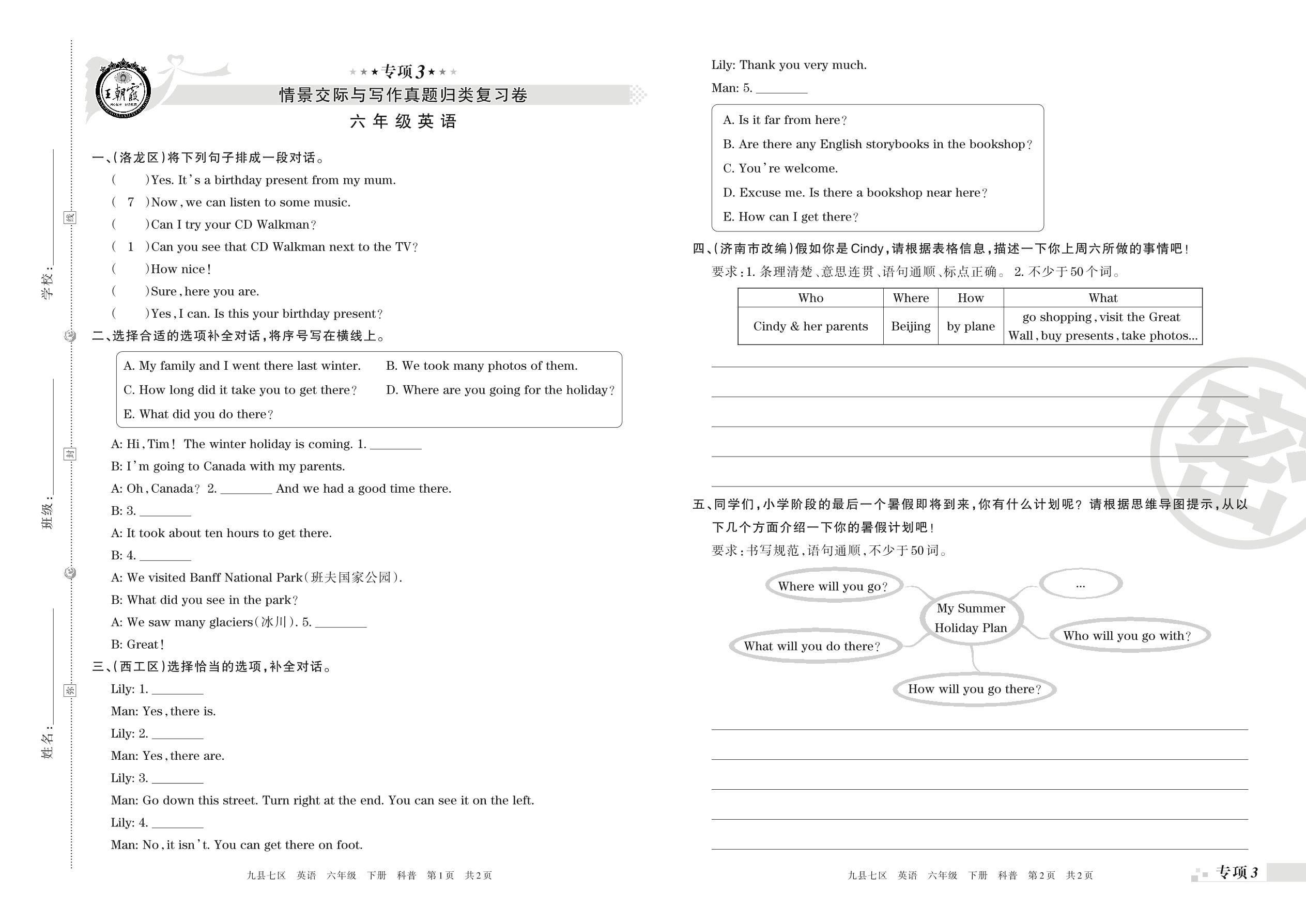 王朝霞期末专项卷——情景交际与写作真题归类复习、补全短文六年级下册英语(科普版)_R210807154849【0】