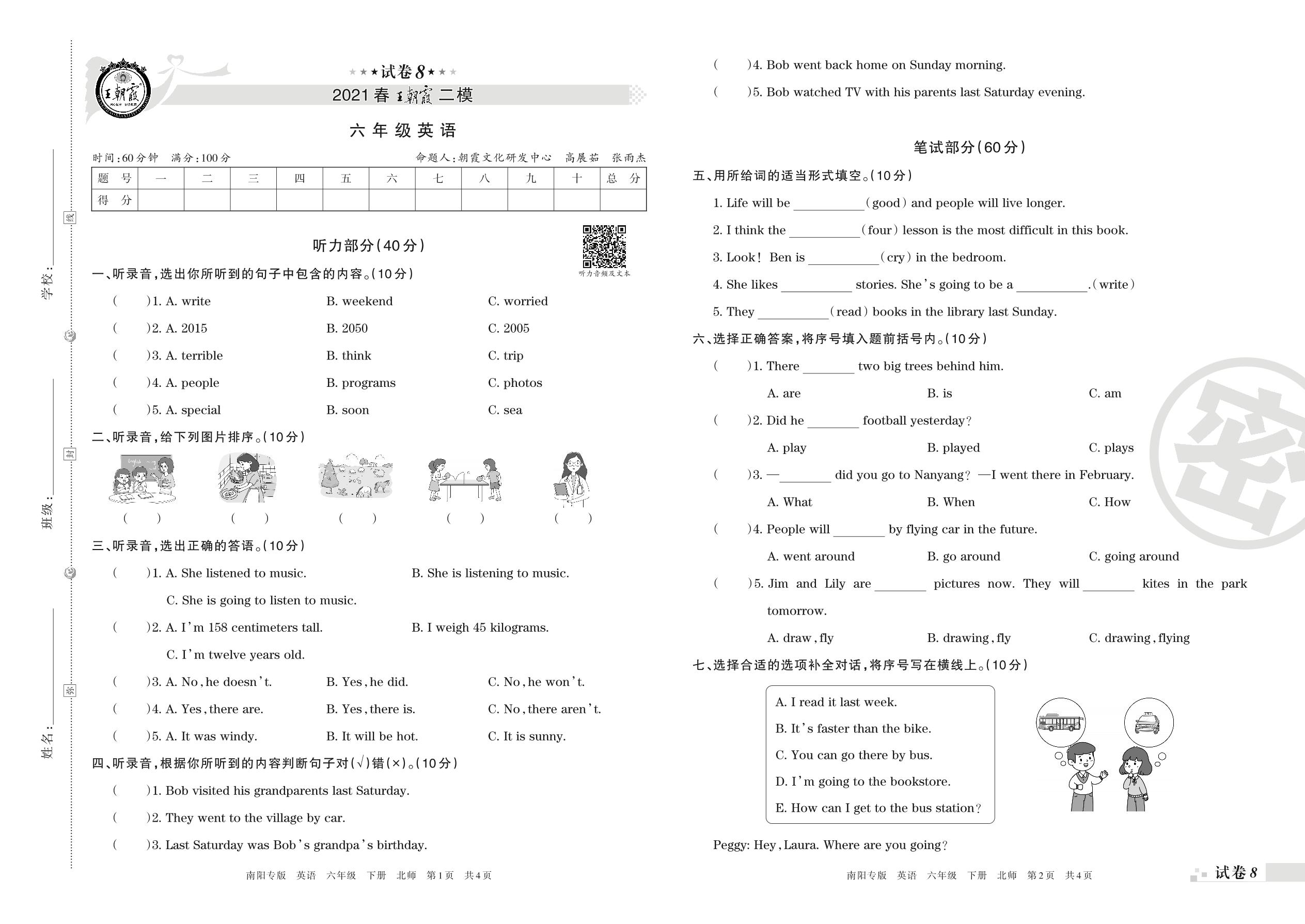 王朝霞期末模拟卷六年级下册英语(北师版)_R210807155206【8】