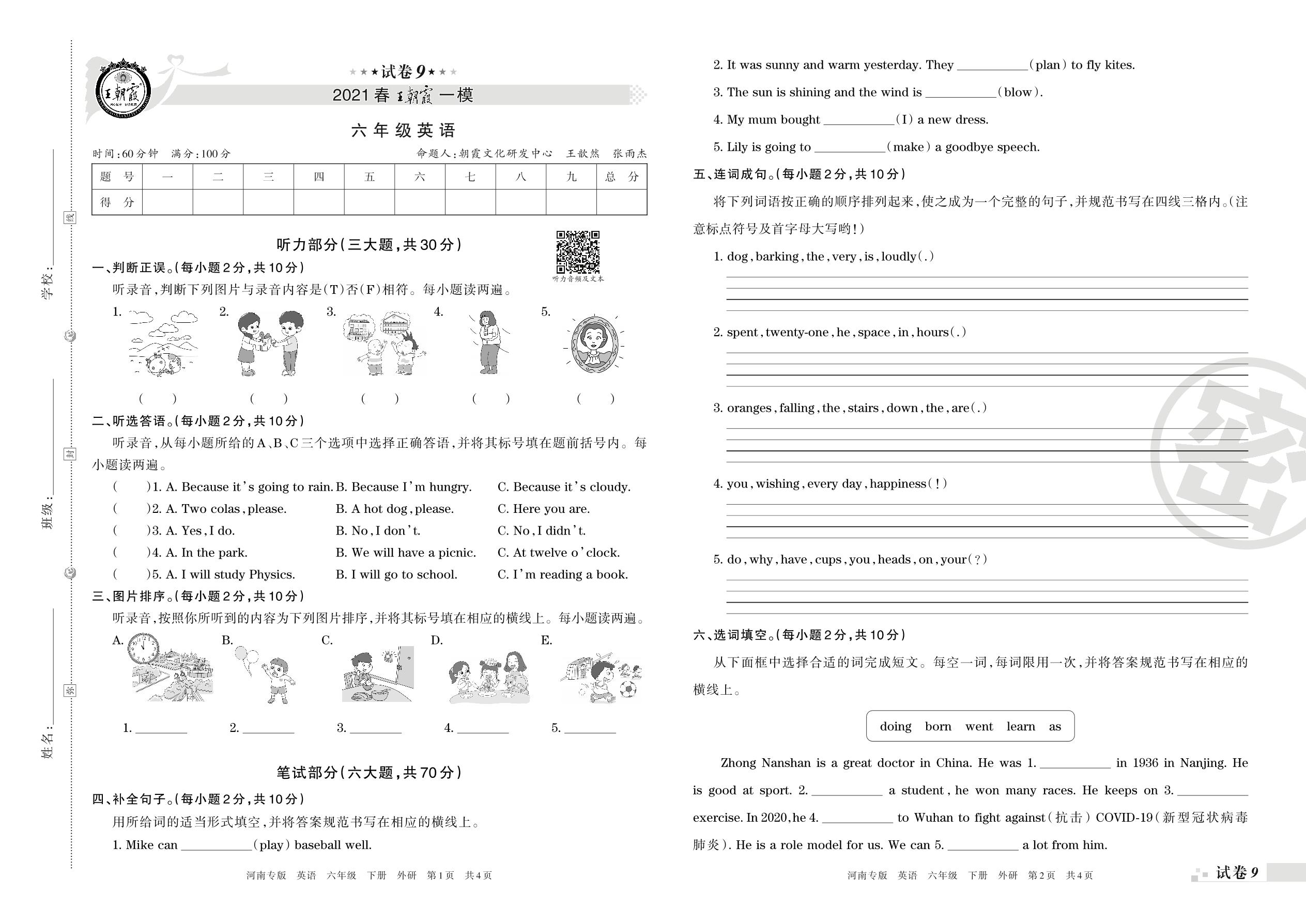 王朝霞期末模拟卷六年级下册英语(外研版)_R210807155312【9】