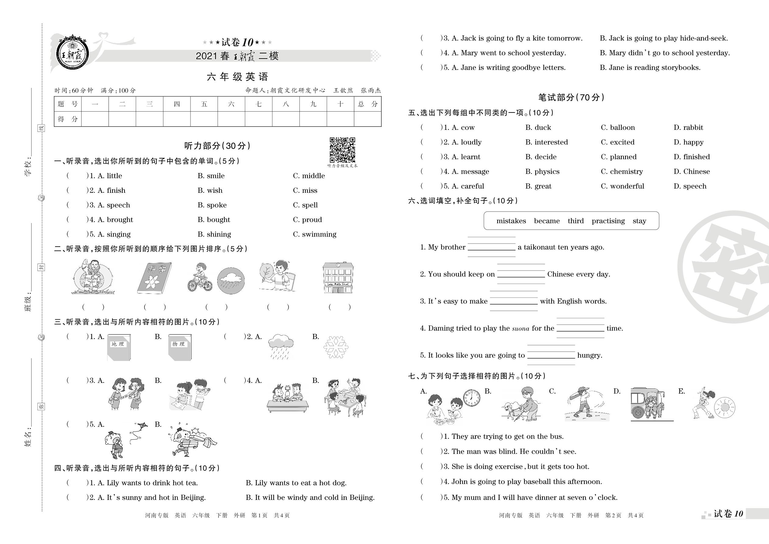 王朝霞期末模拟卷六年级下册英语(外研版)_R210807155318【10】