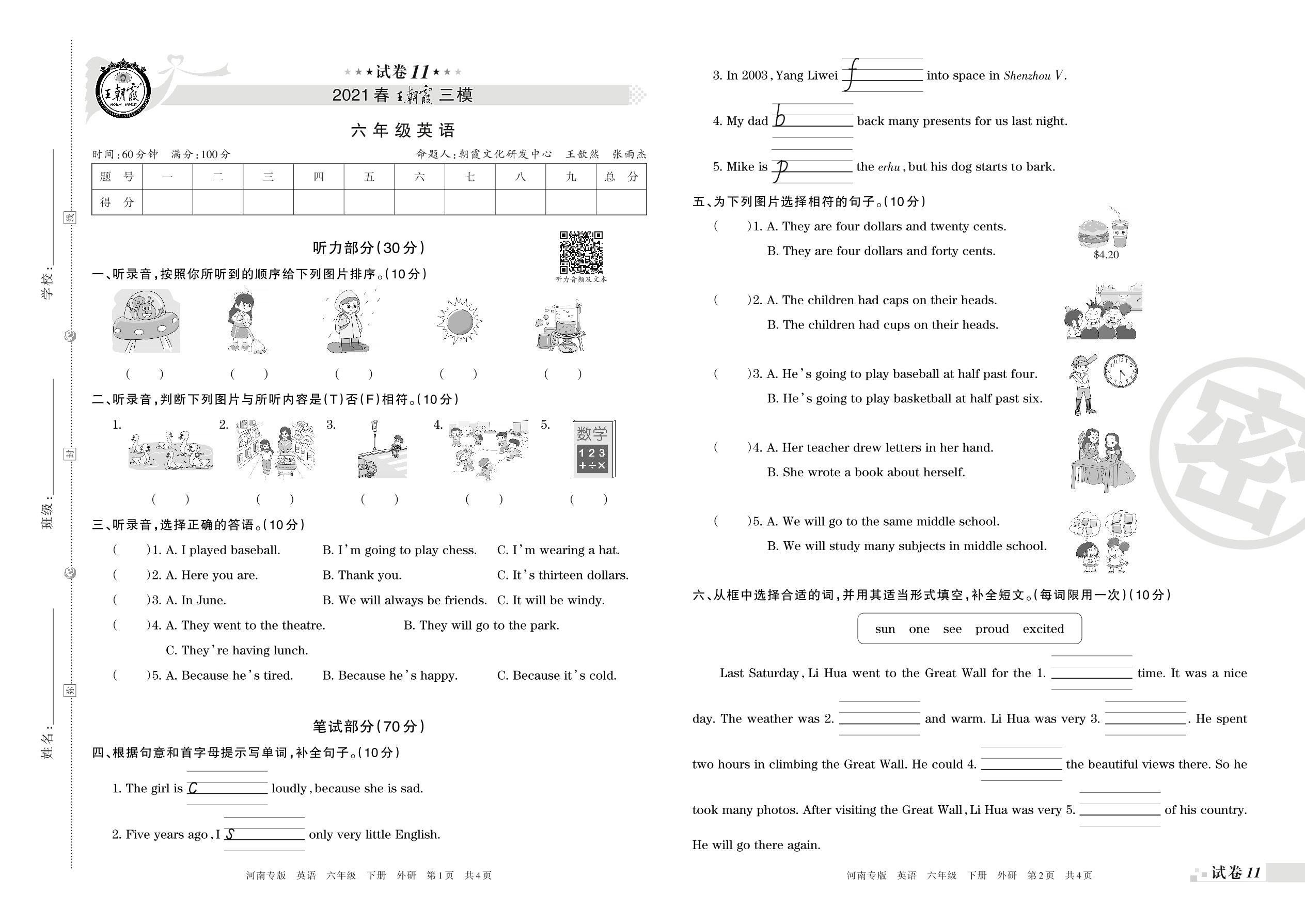 王朝霞期末模拟卷六年级下册英语(外研版)_R210807155323【11】