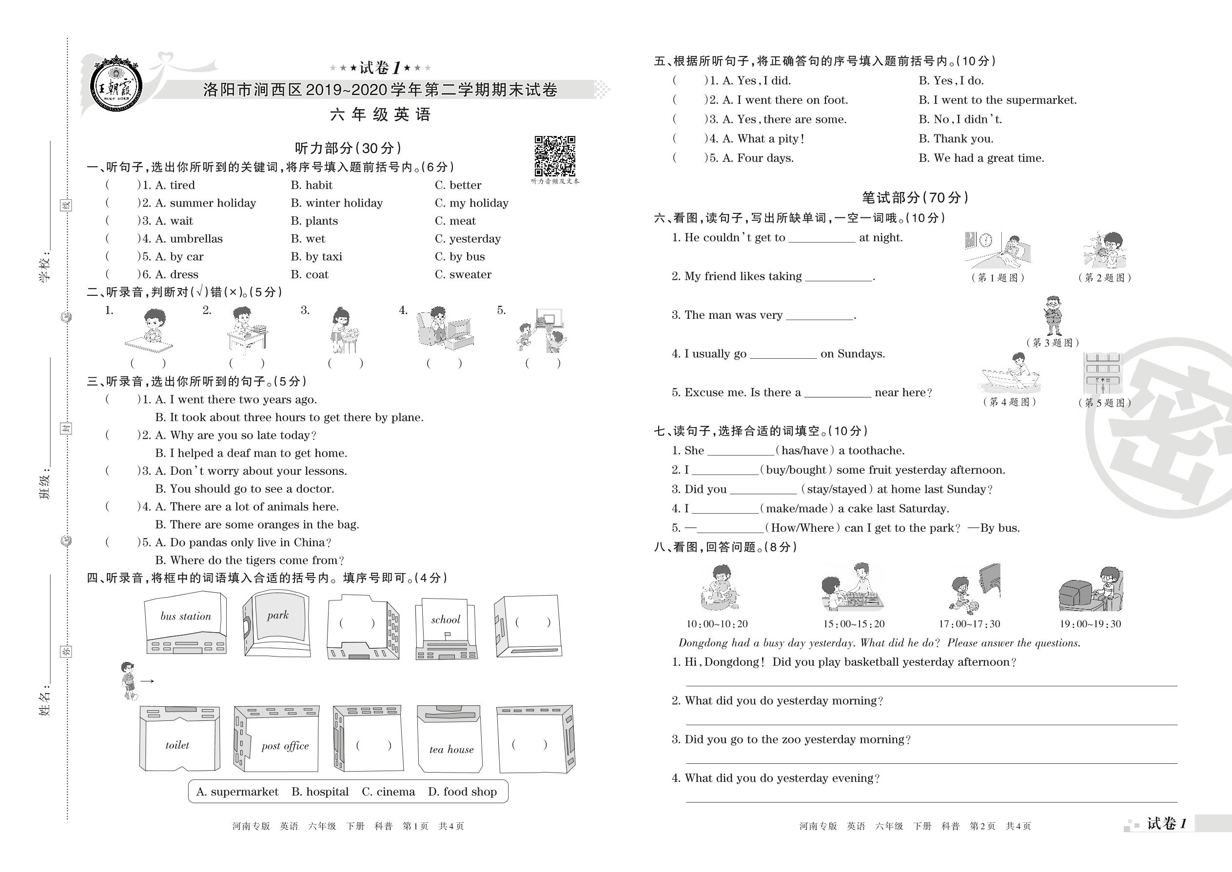 2019-2020学年第二学期洛阳市涧西区六年级英语试卷(科普版)_R210807155341【1】