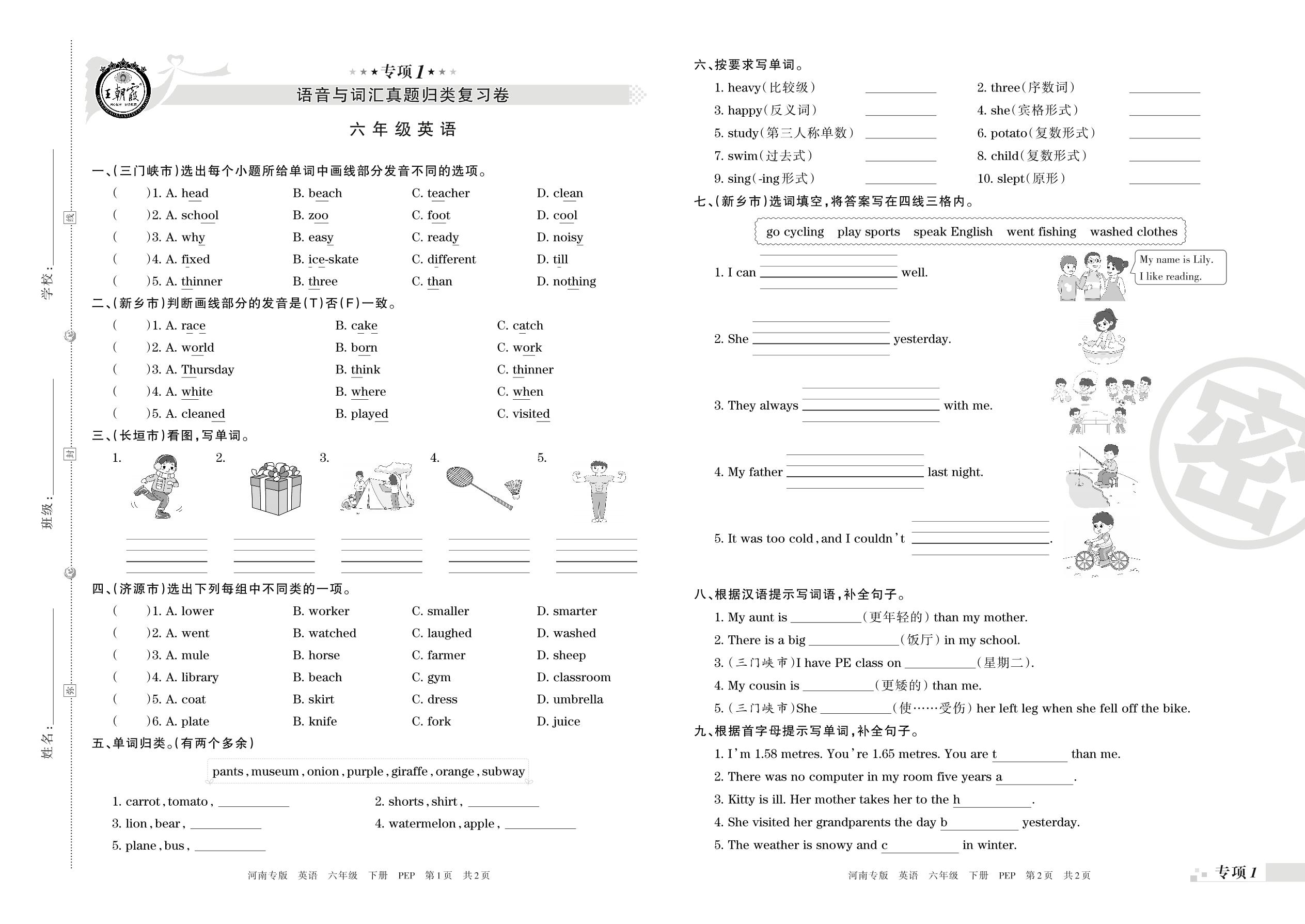 王朝霞期末专项卷——语音与词汇、句子真题归类复习六年级下册英语(PEP版)【0】