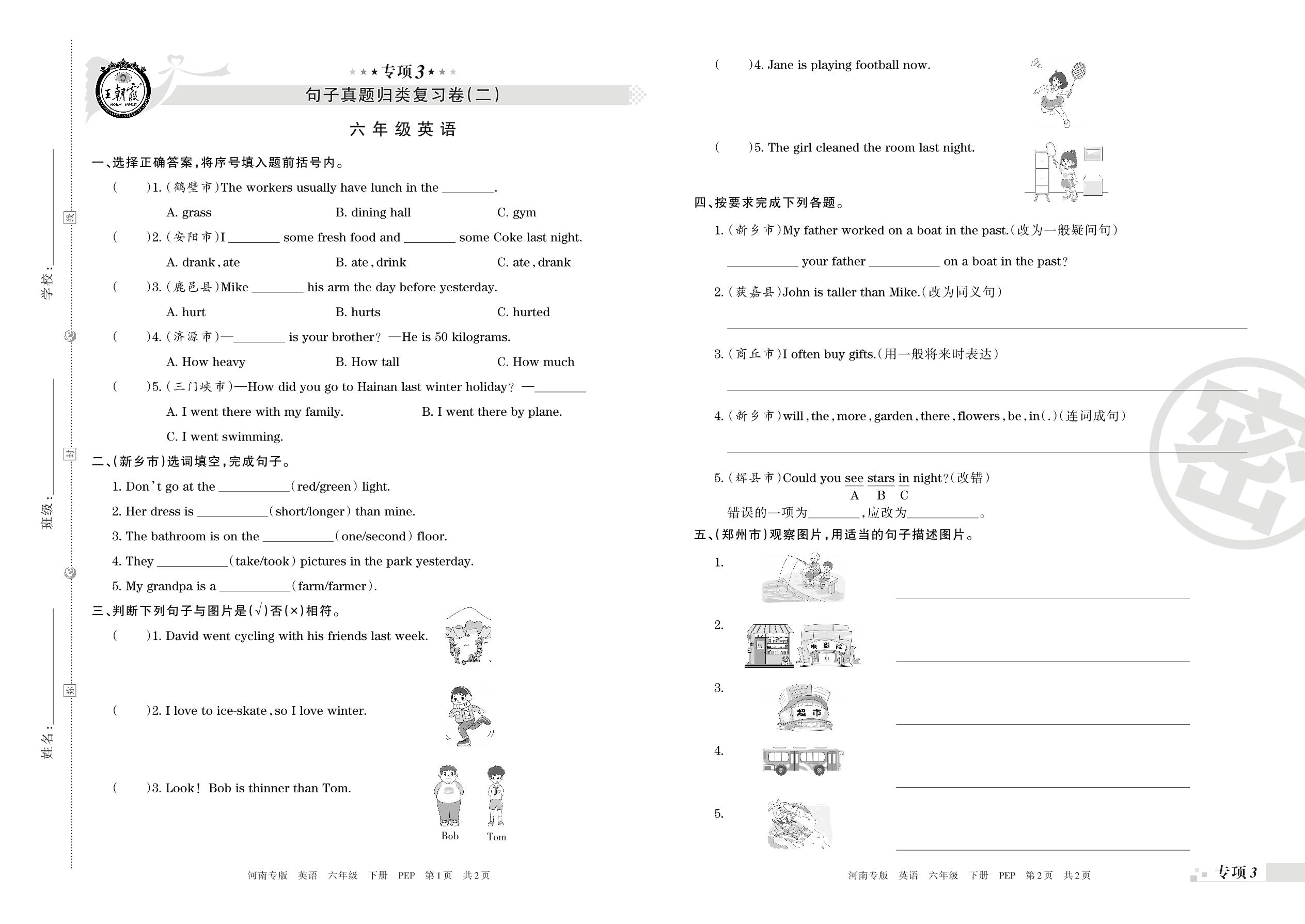王朝霞期末专项卷——句子、情景交际真题归类复习六年级下册英语(PEP版)【0】