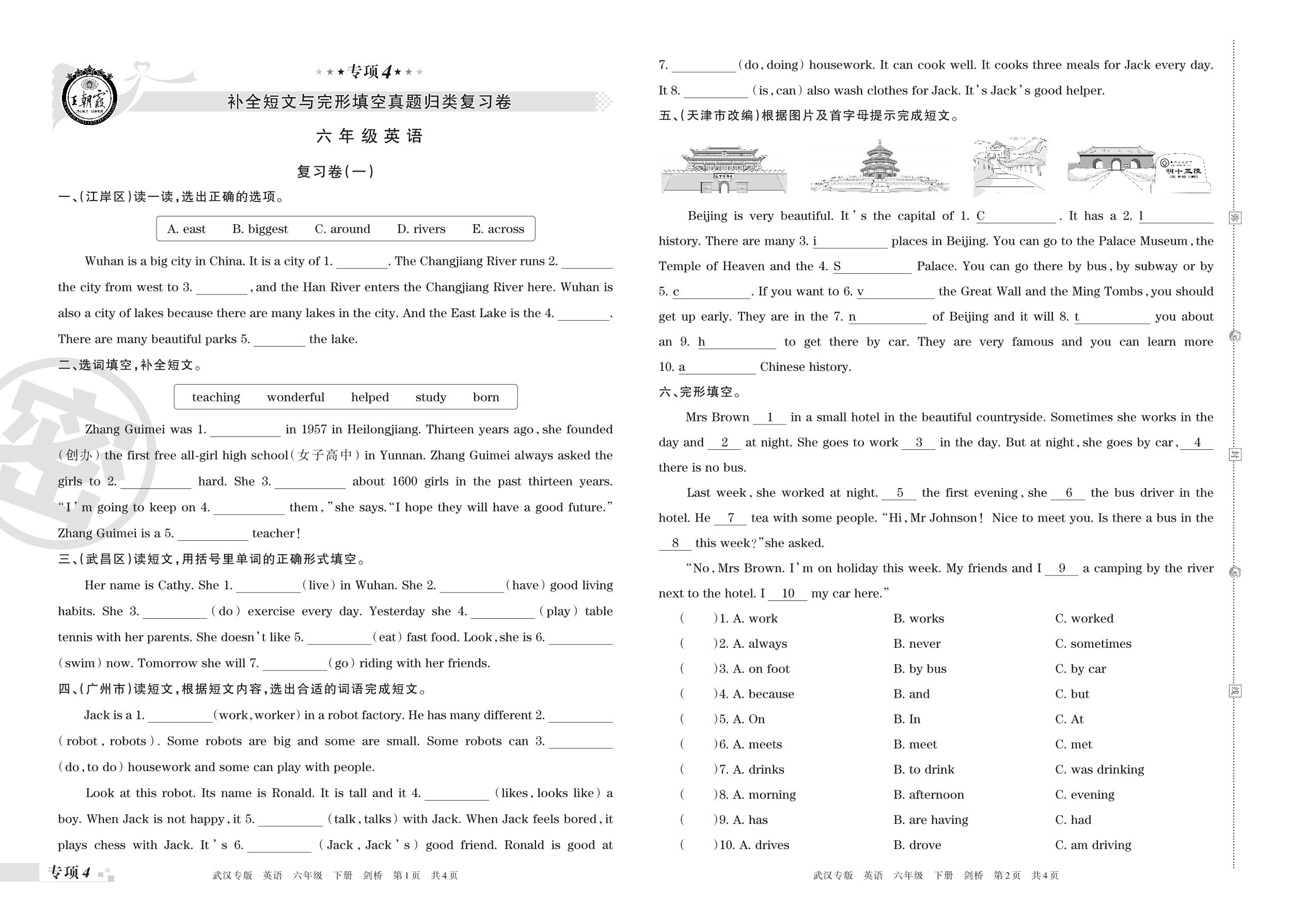 王朝霞期末专项卷——补全短文与完形填空真题归类复习六年级下册英语(剑桥版)【0】