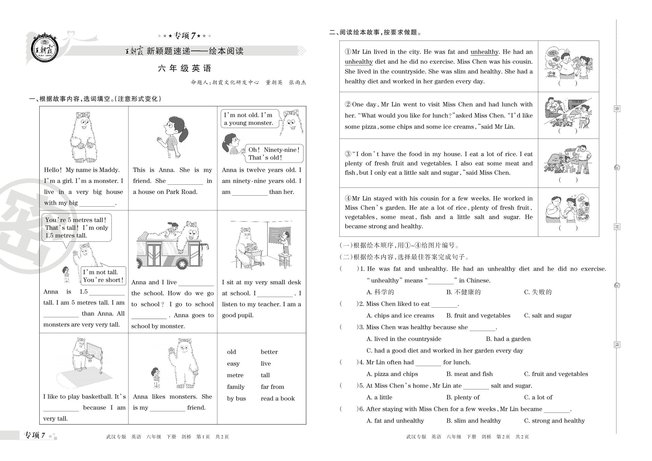 王朝霞期末专项卷——绘本阅读真题归类复习六年级下册英语(剑桥版)【0】