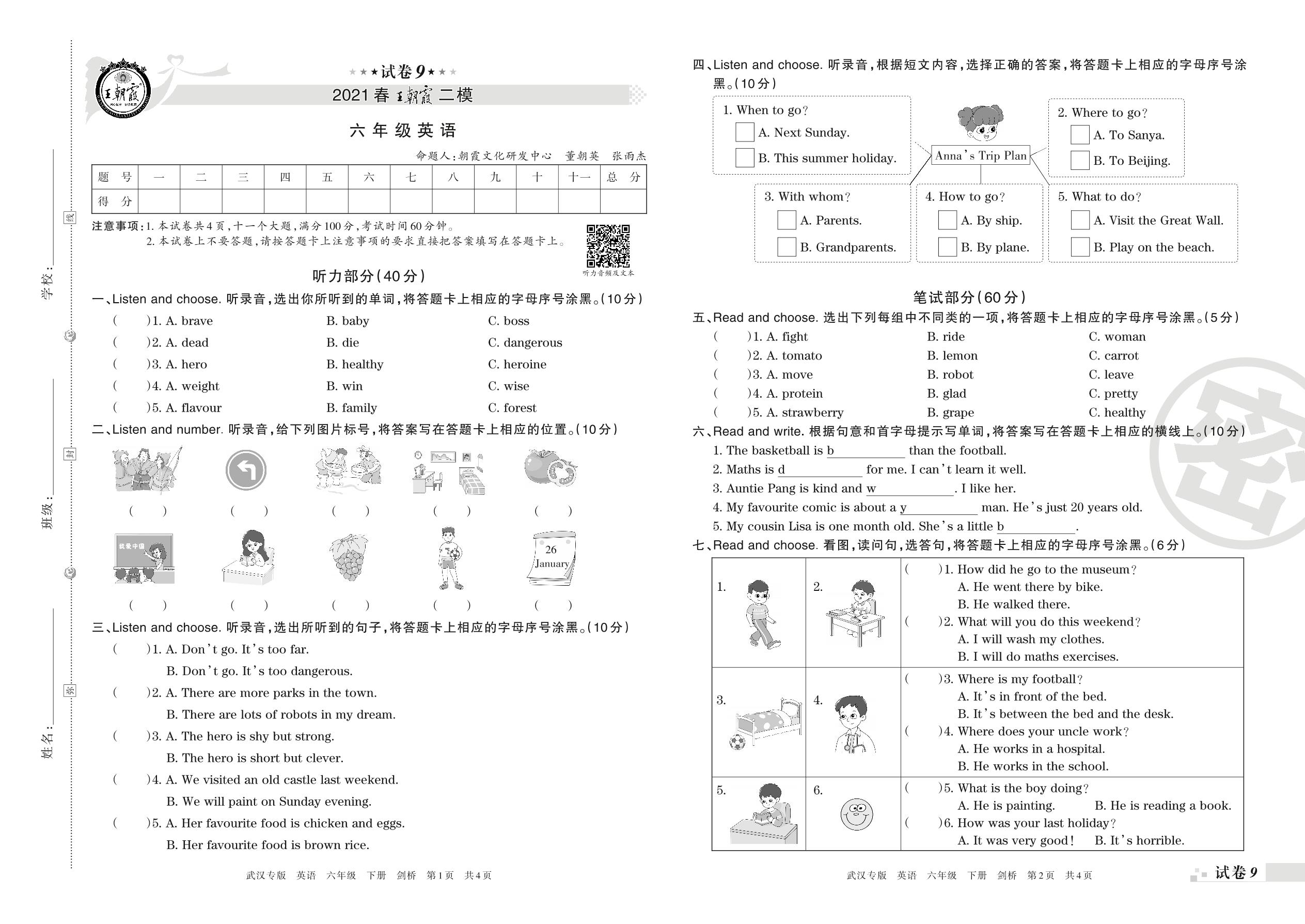 王朝霞期末模拟卷六年级下册英语(剑桥版)_R210807155752【9】