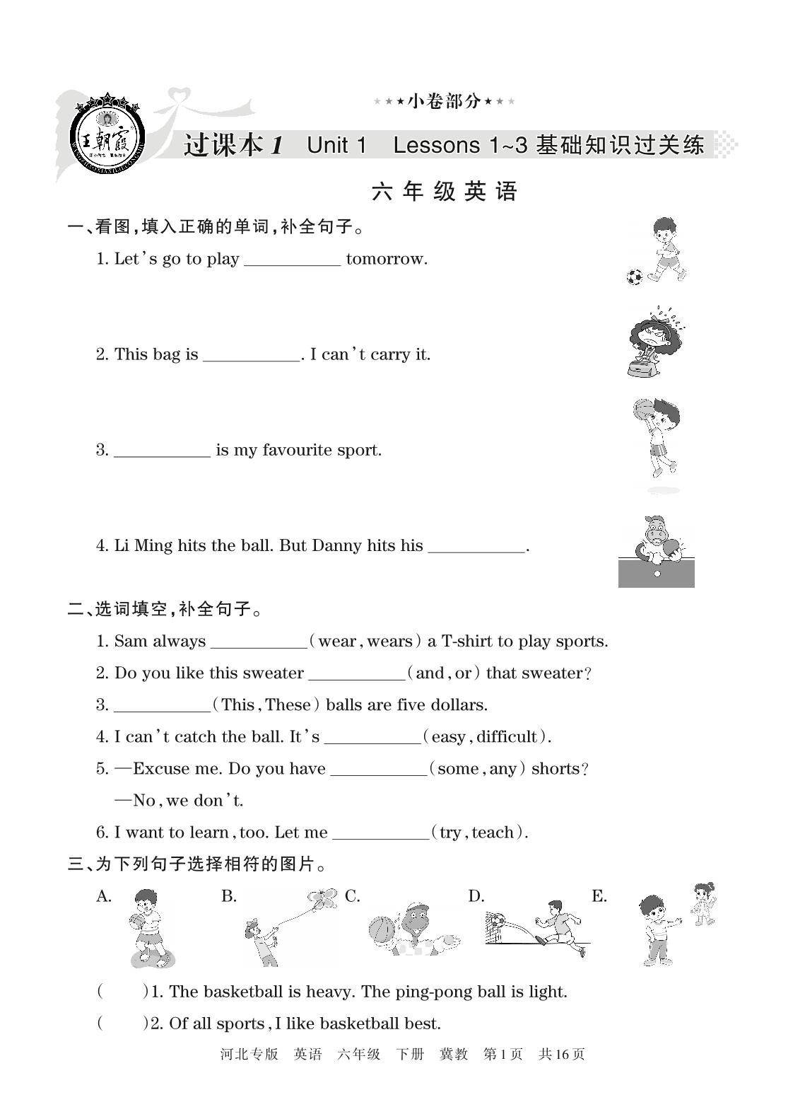 王朝霞期末小卷六年级下册英语(冀教版)【0】