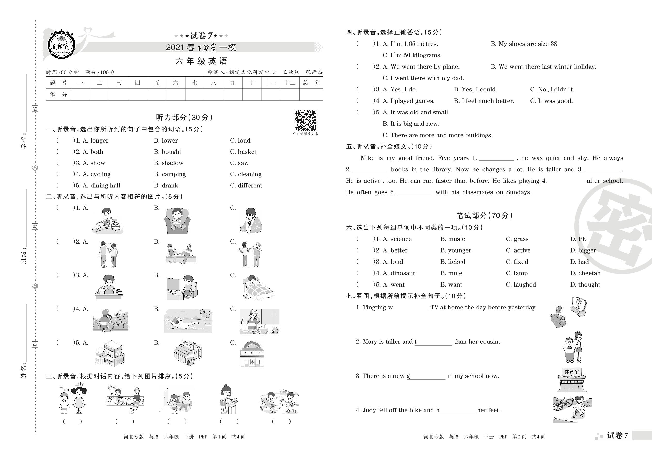 王朝霞期末模拟卷六年级下册英语(PEP版)_R210807155951【7】