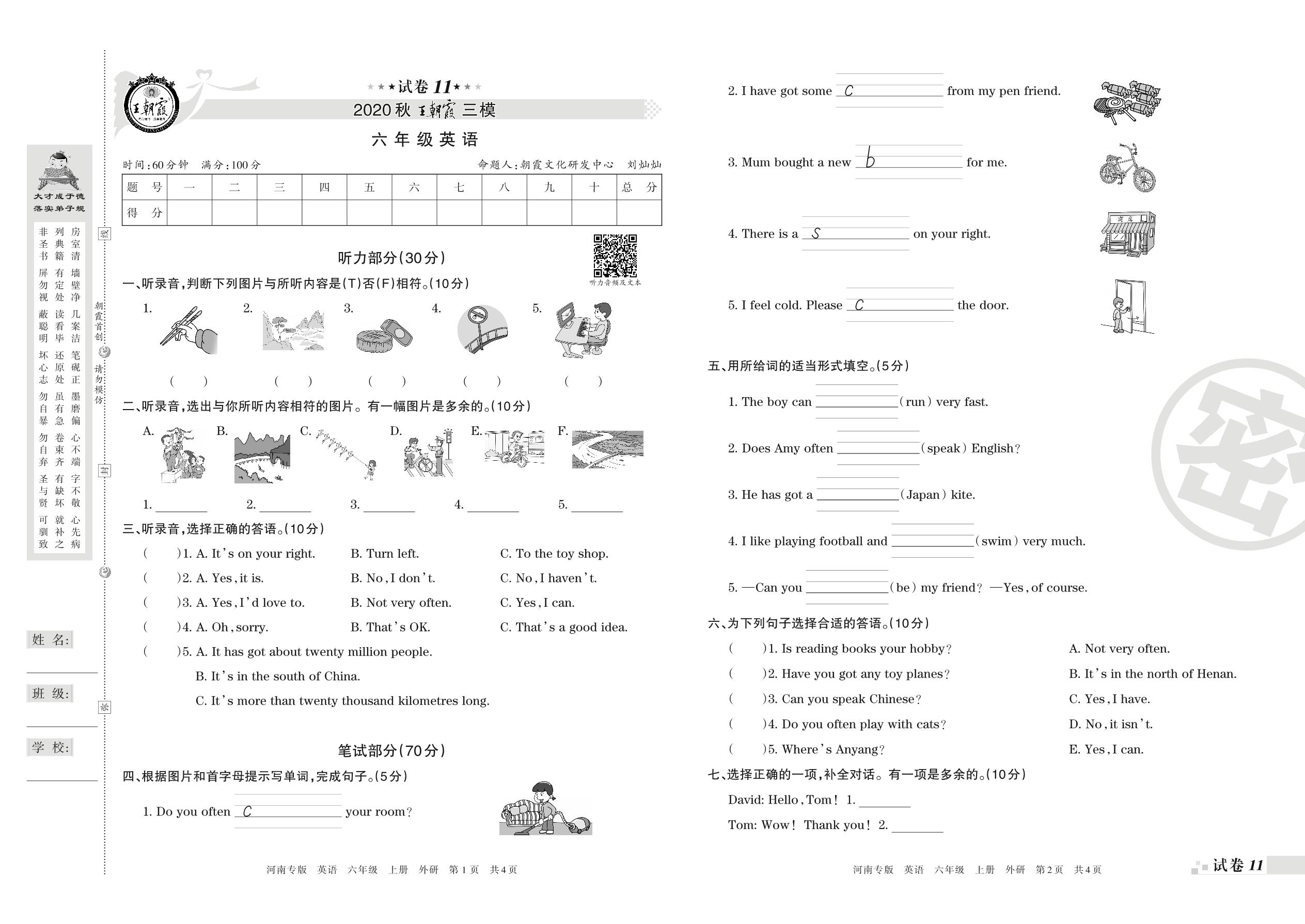 王朝霞期末模拟卷六年级上册英语(外研版)_R210807160402【11】