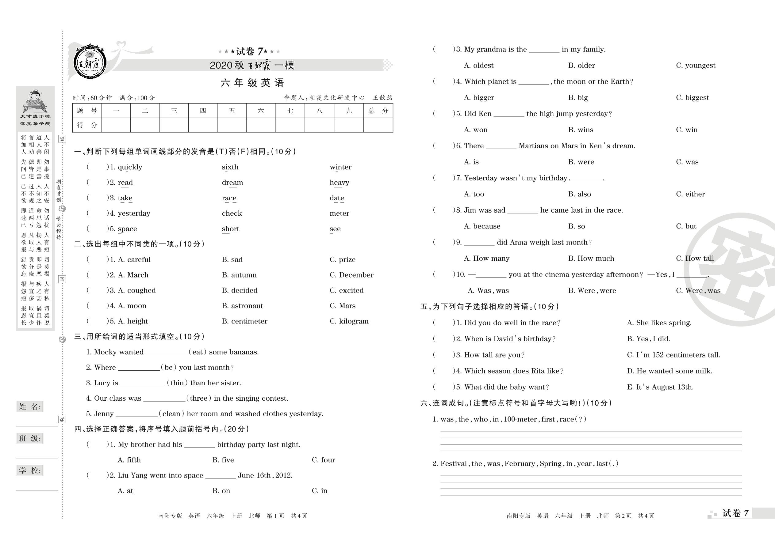 王朝霞期末模拟卷六年级上册英语(北师版)_R210807160441【7】