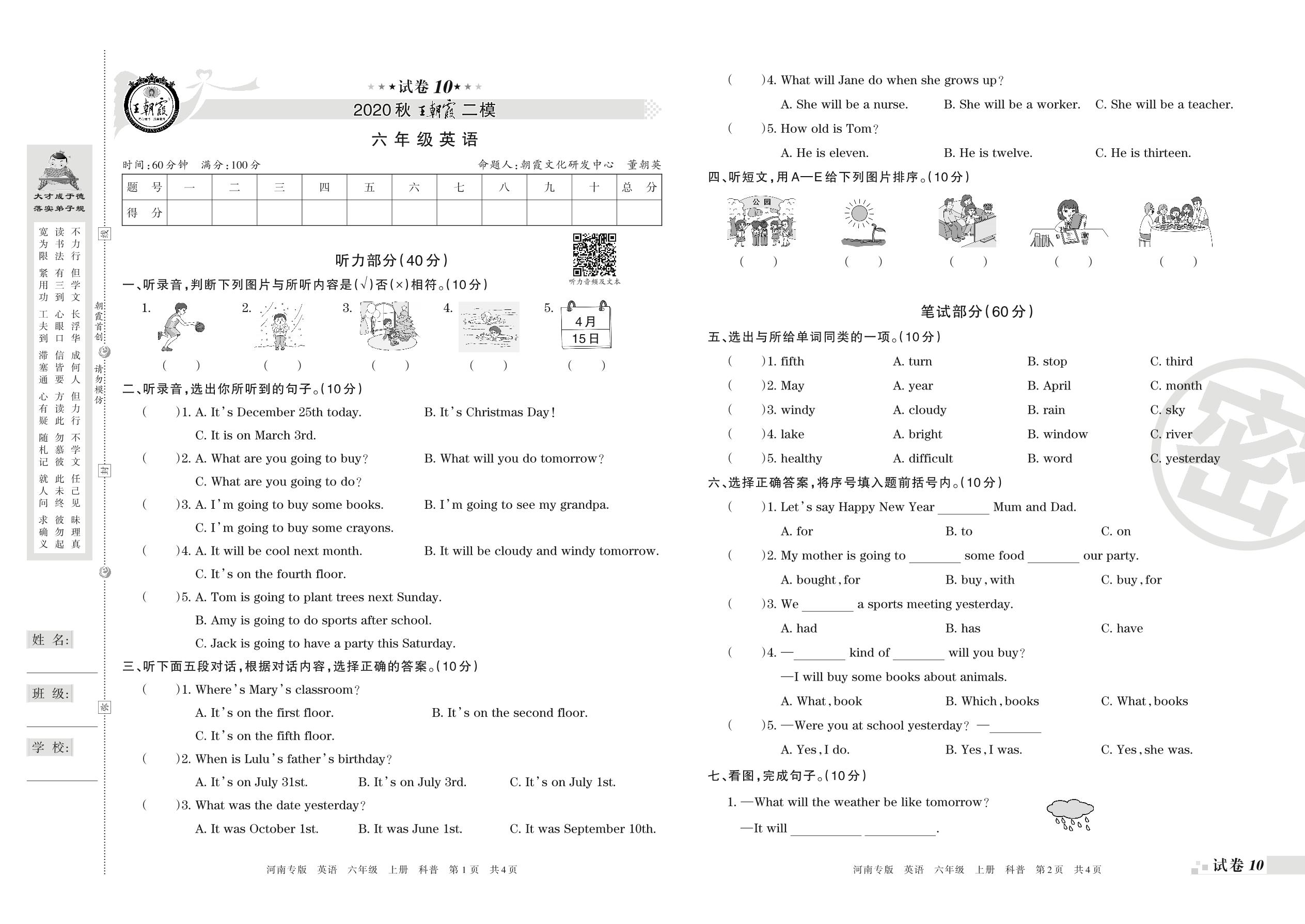 王朝霞期末模拟卷六年级上册英语(科普版)_R210807160651【10】