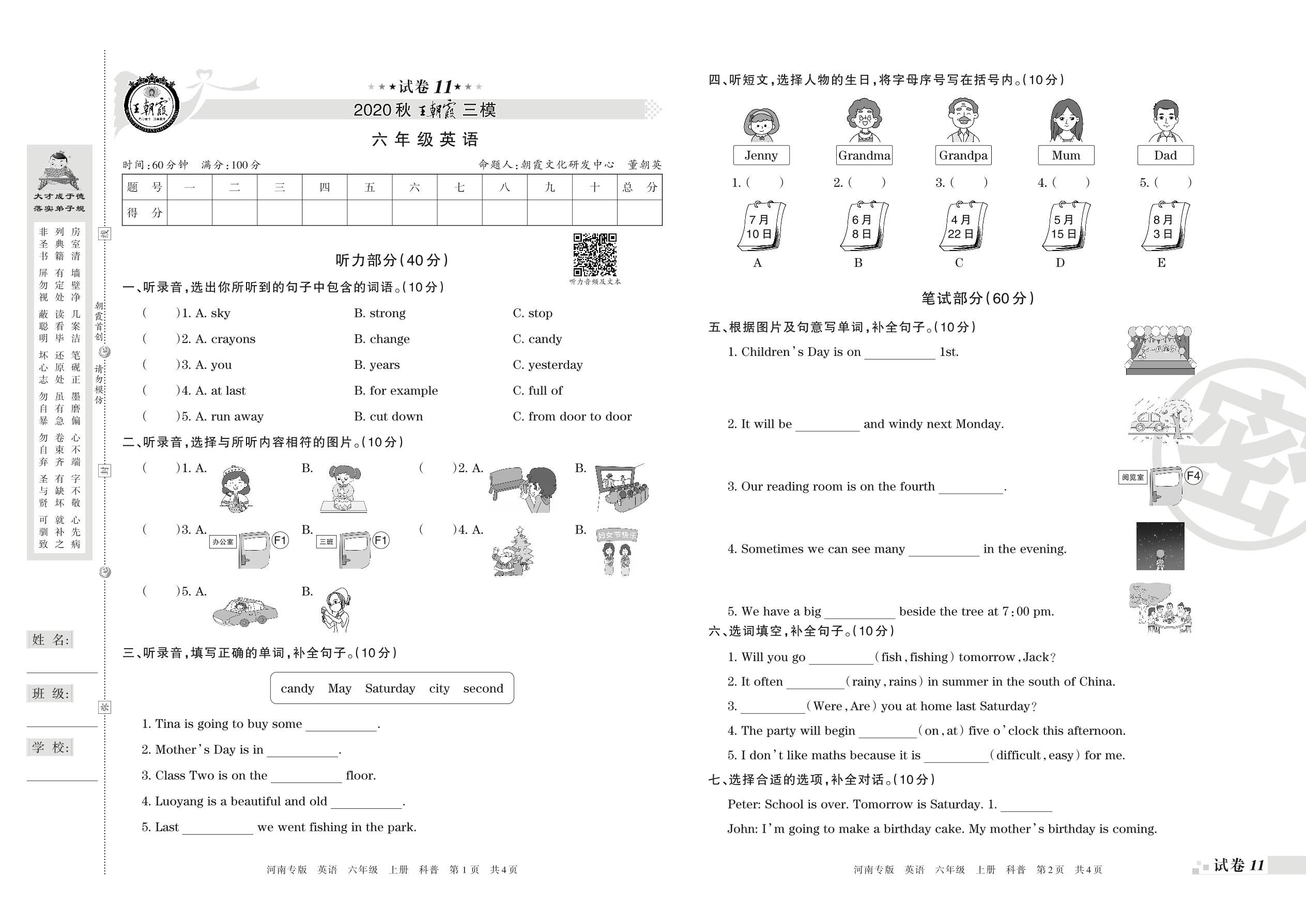 王朝霞期末模拟卷六年级上册英语(科普版)_R210807160658【11】