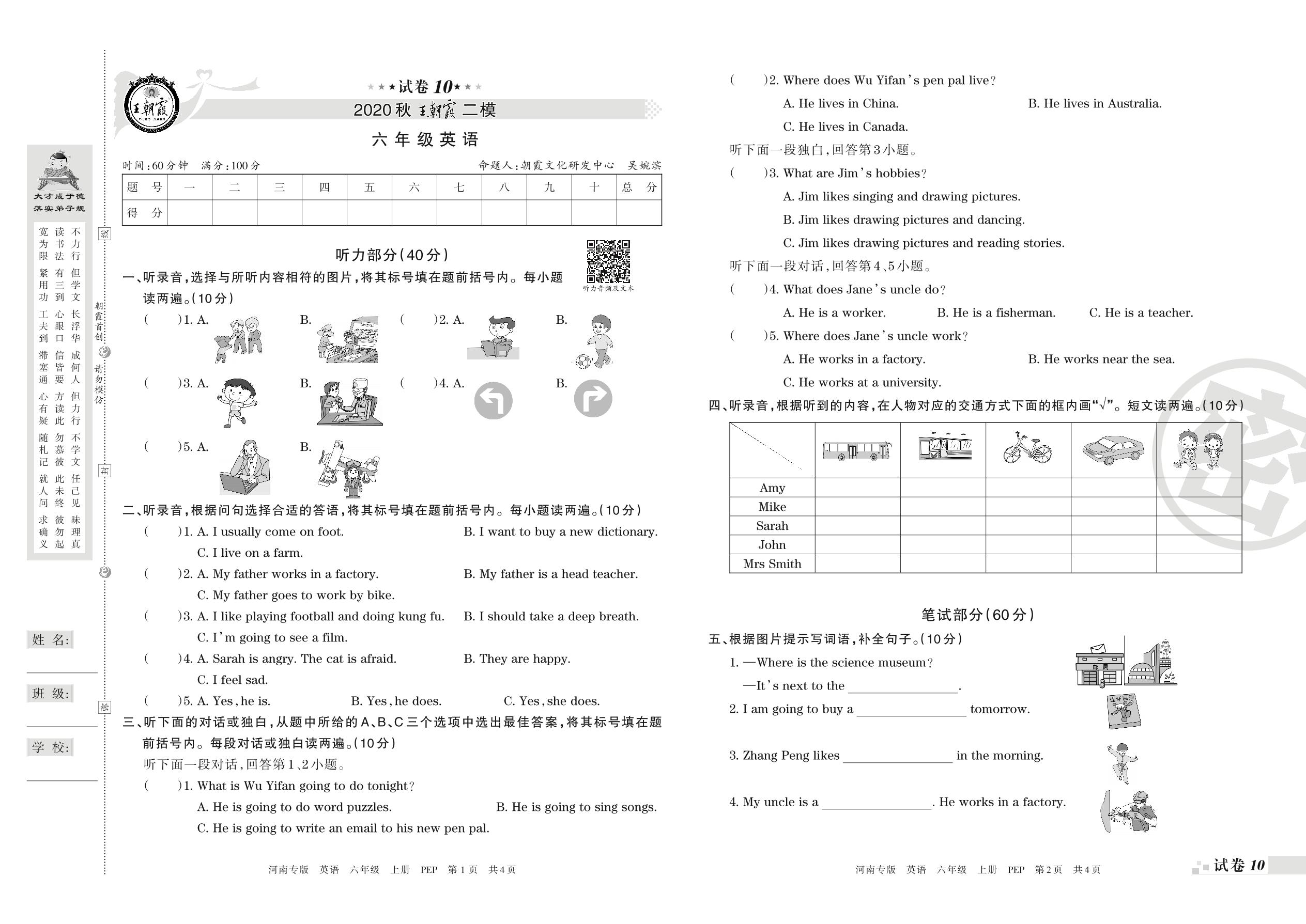 王朝霞期末模拟卷六年级上册英语(PEP版)_R210807160925【10】