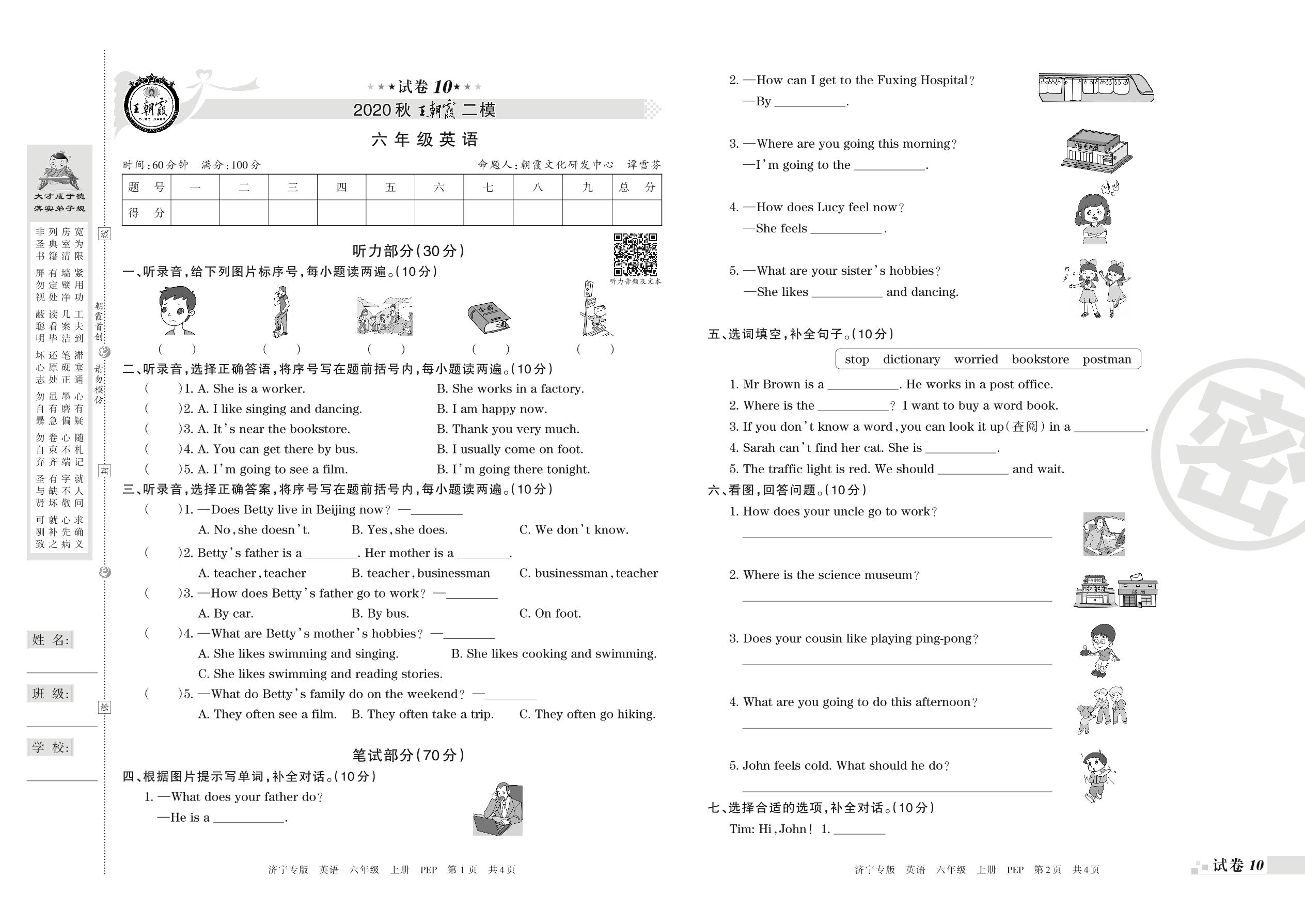 王朝霞期末模拟卷六年级上册英语(PEP版)_R210807161242【10】