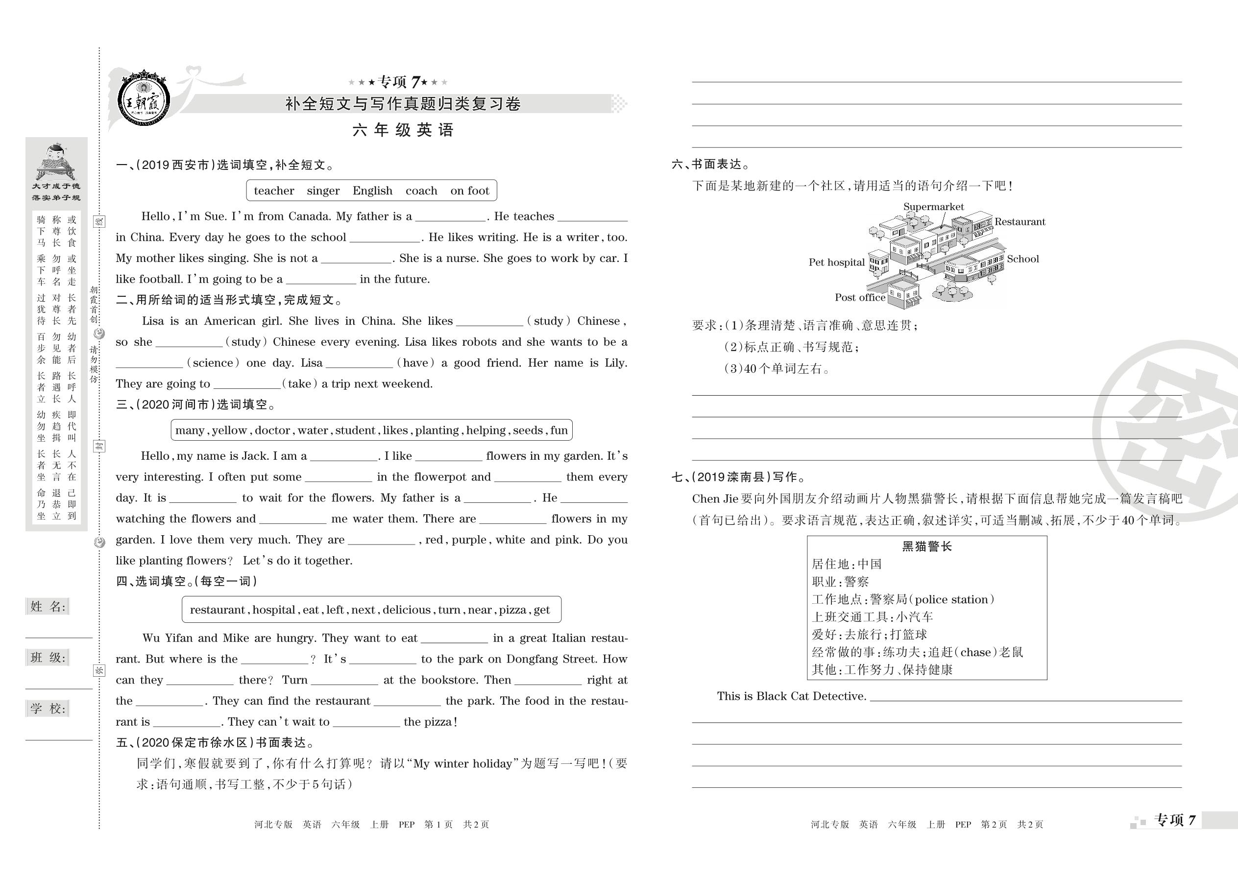 王朝霞期末专项卷——补全短文与写作真题归类复习、绘本阅读六年级上册英语(PEP版)_R210807161417【0】