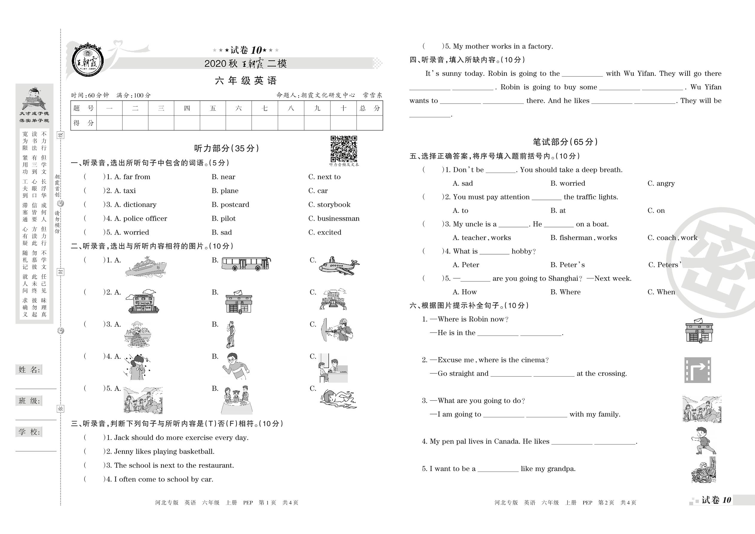 王朝霞期末模拟卷六年级上册英语(PEP版)_R210807161508【10】