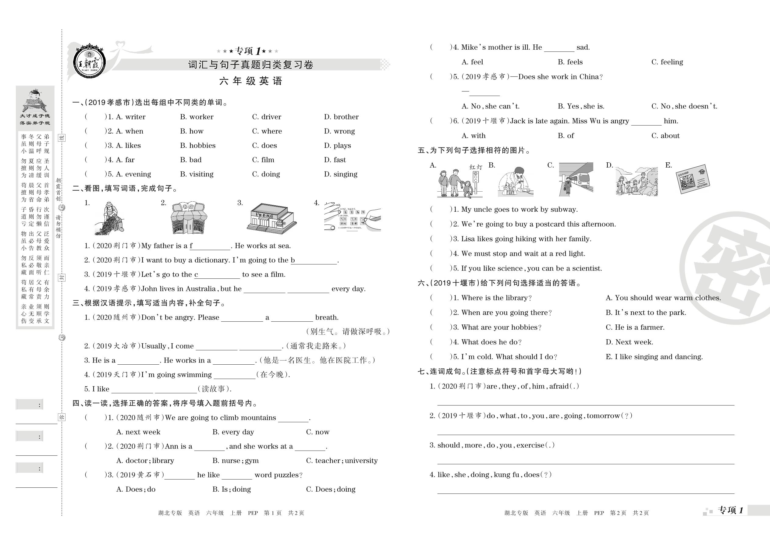 王朝霞期末专项卷——词汇与句子、阅读理解真题归类复习六年级上册英语(PEP版)_R210807161518【0】