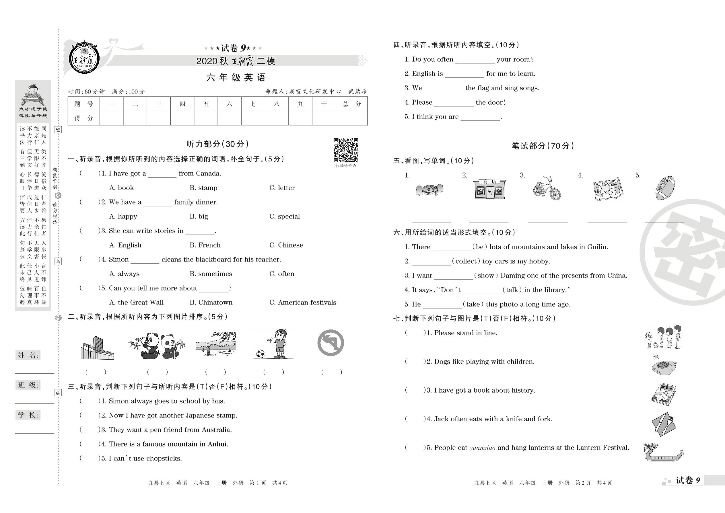 王朝霞期末模拟卷六年级上册英语(外研版)_R210807161730【9】