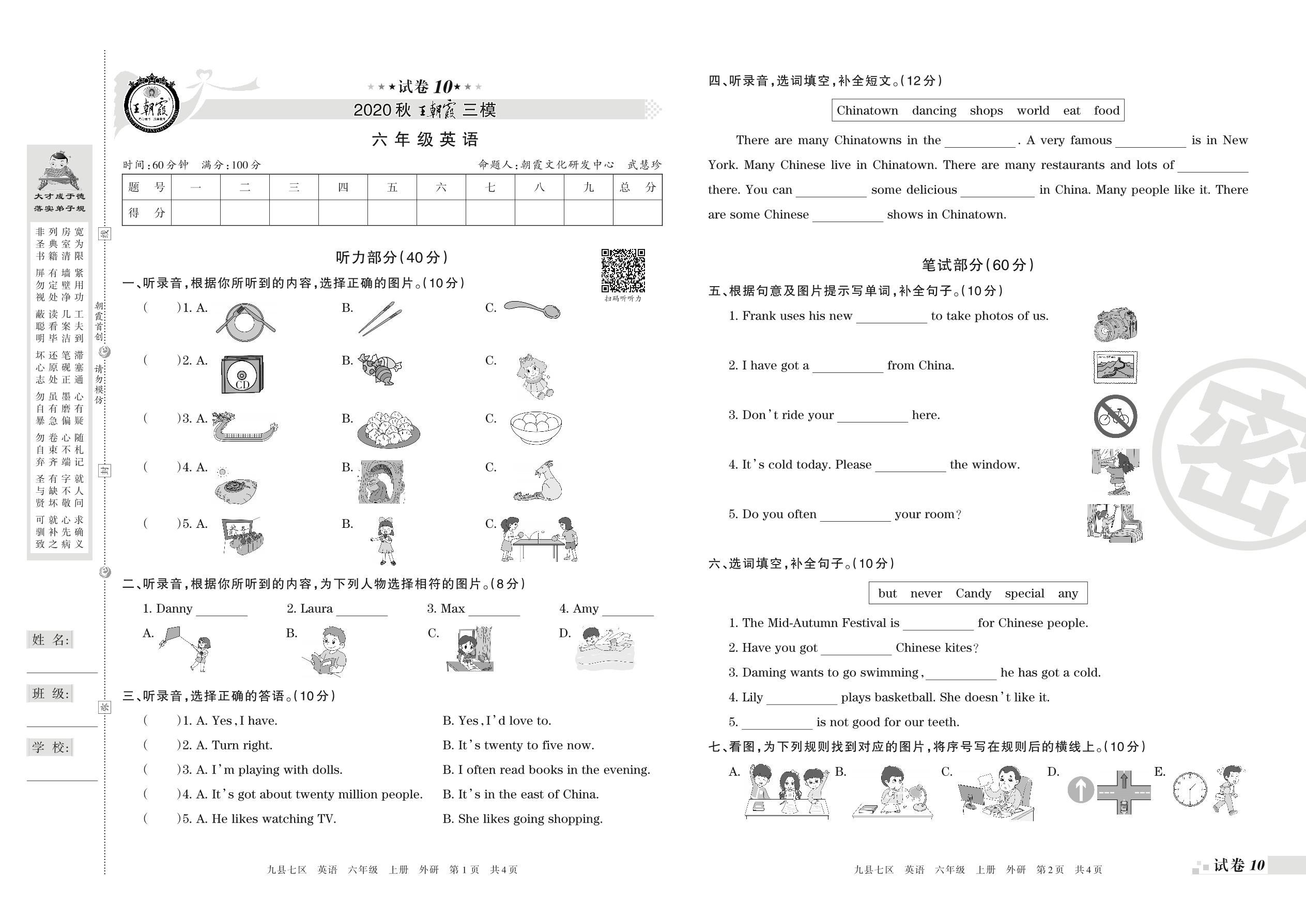 王朝霞期末模拟卷六年级上册英语(外研版)_R210807161734【10】