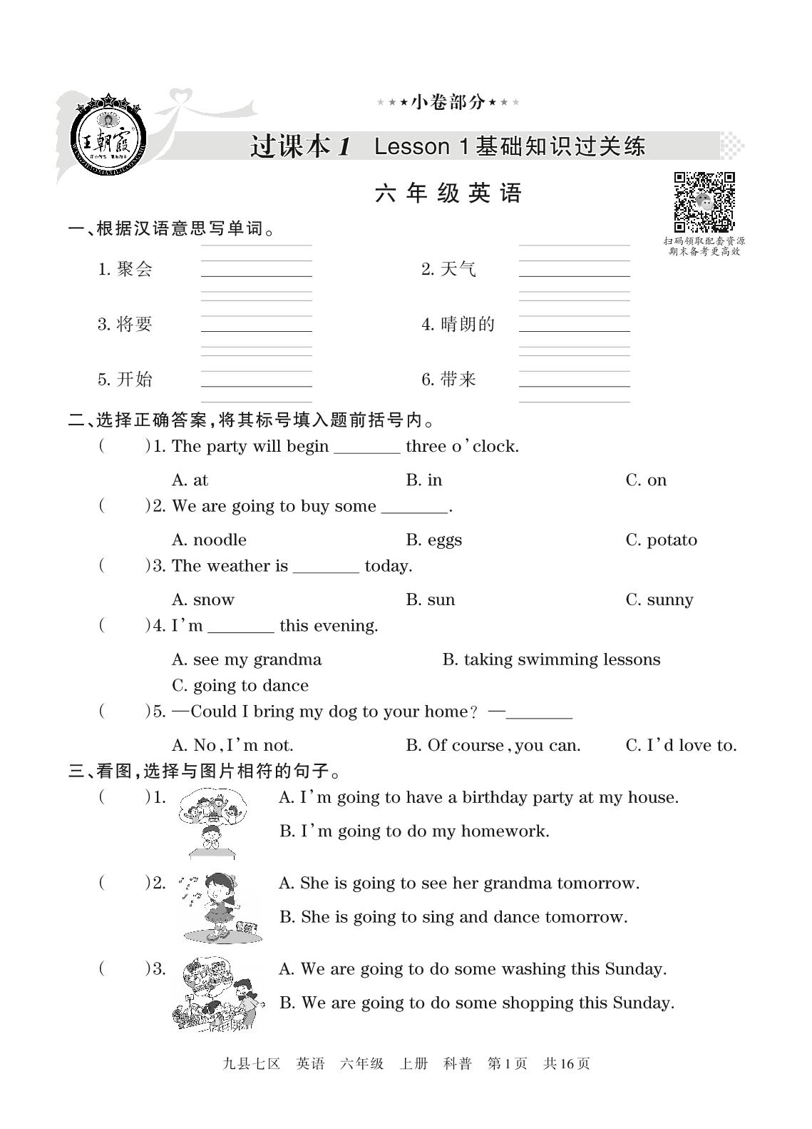 王朝霞期末过课本六年级上册英语(科普版)【0】