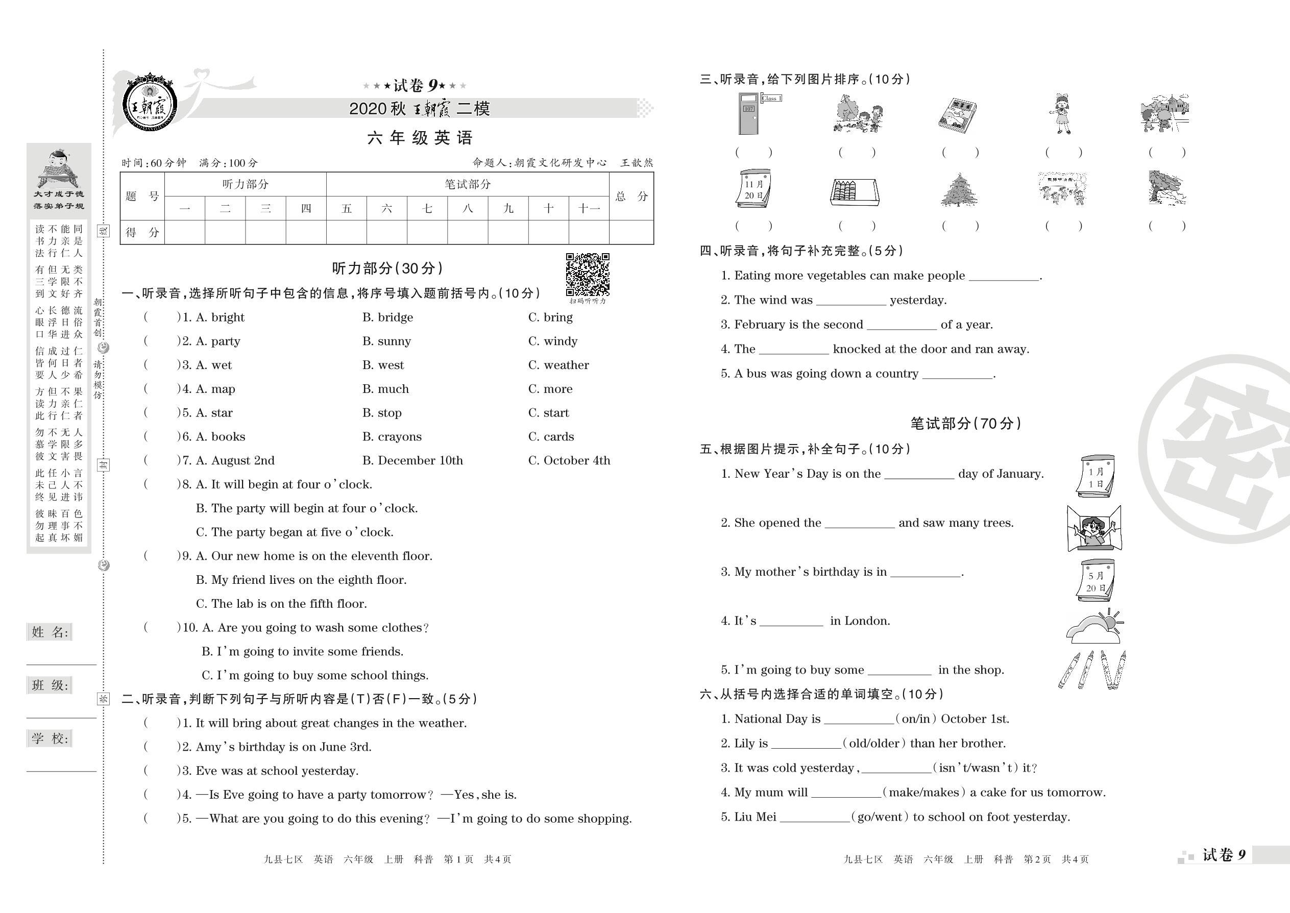 王朝霞期末模拟卷六年级上册英语(科普版)_R210807161847【9】