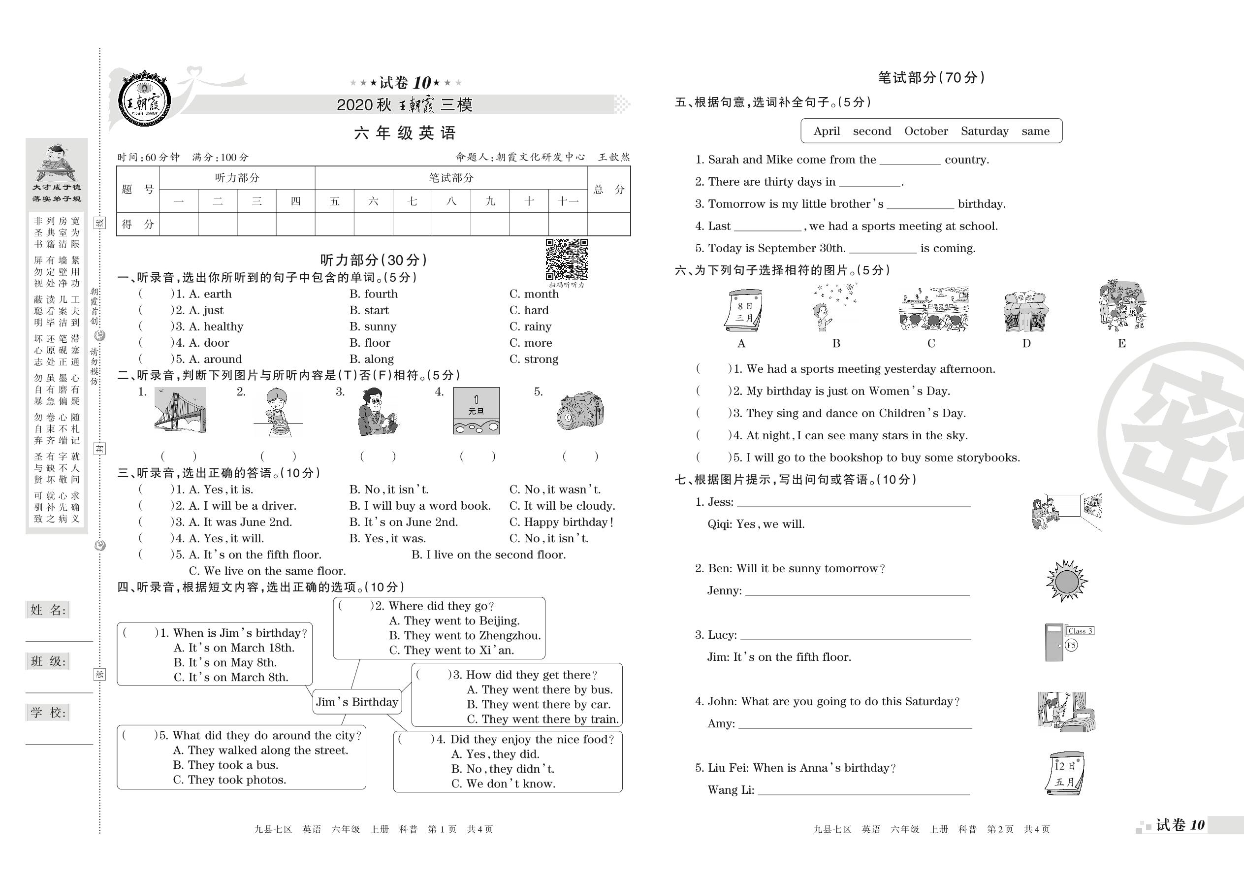 王朝霞期末模拟卷六年级上册英语(科普版)_R210807161855【10】