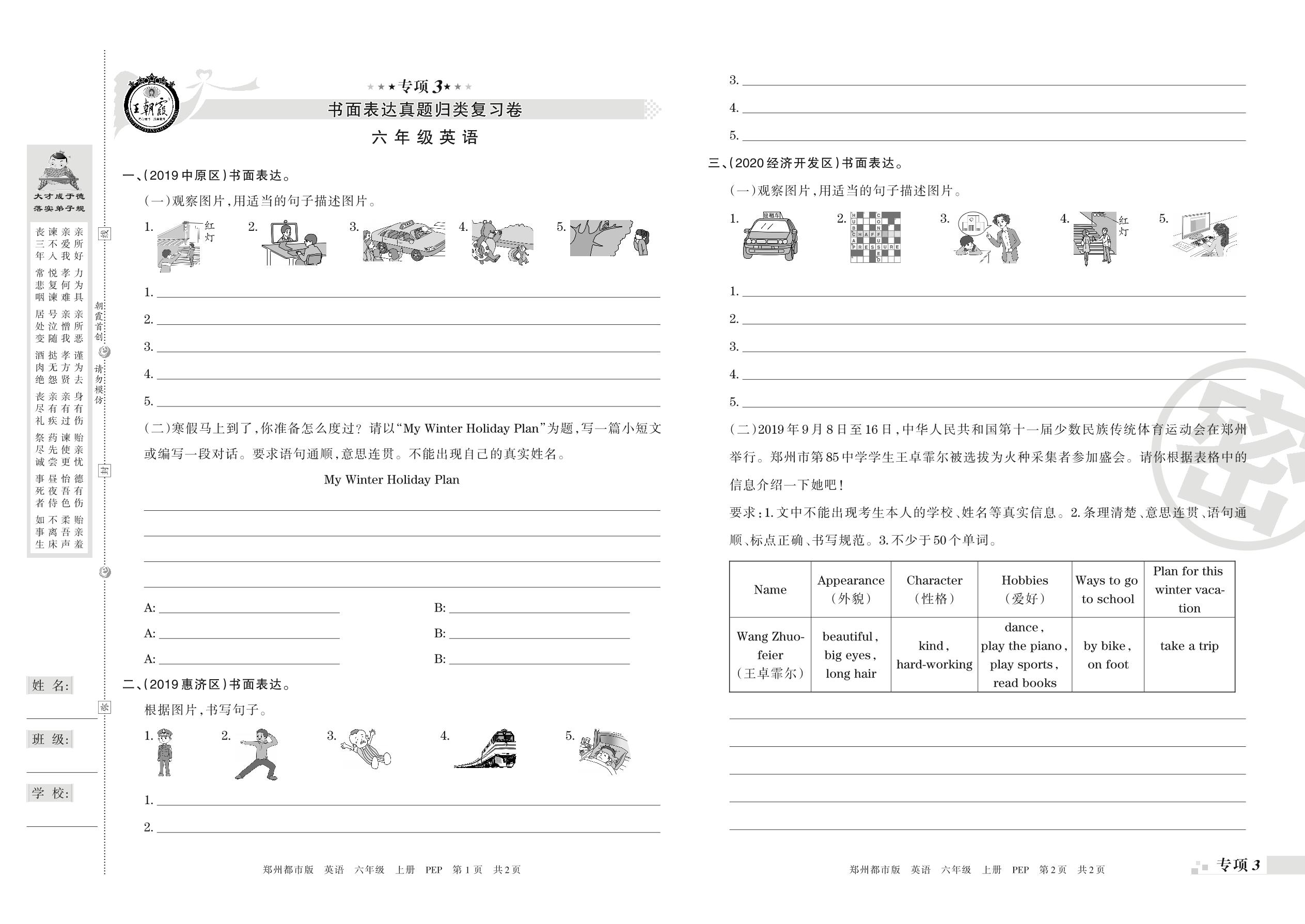 王朝霞期末专项卷——书面表达真题归类复习、绘本阅读六年级上册英语(PEP版)_R210807161911【0】