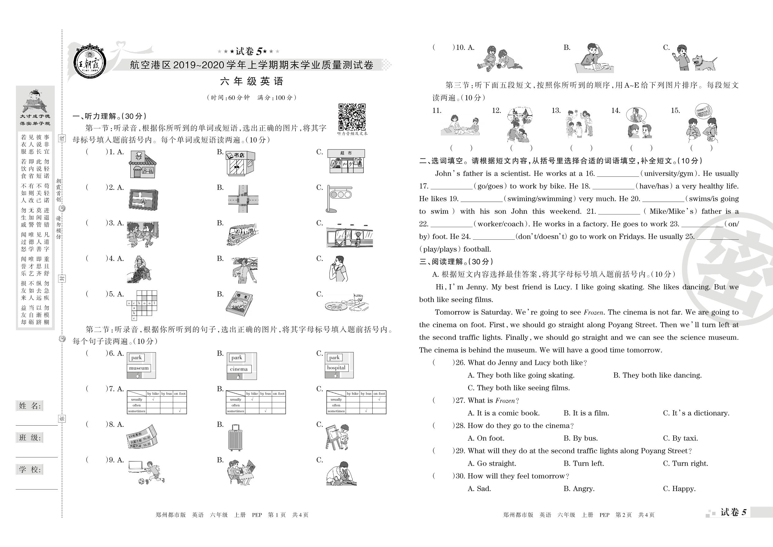 2019-2020学年第一学期郑州市航空港区六年级英语试卷(PEP版)_R210807161948【5】
