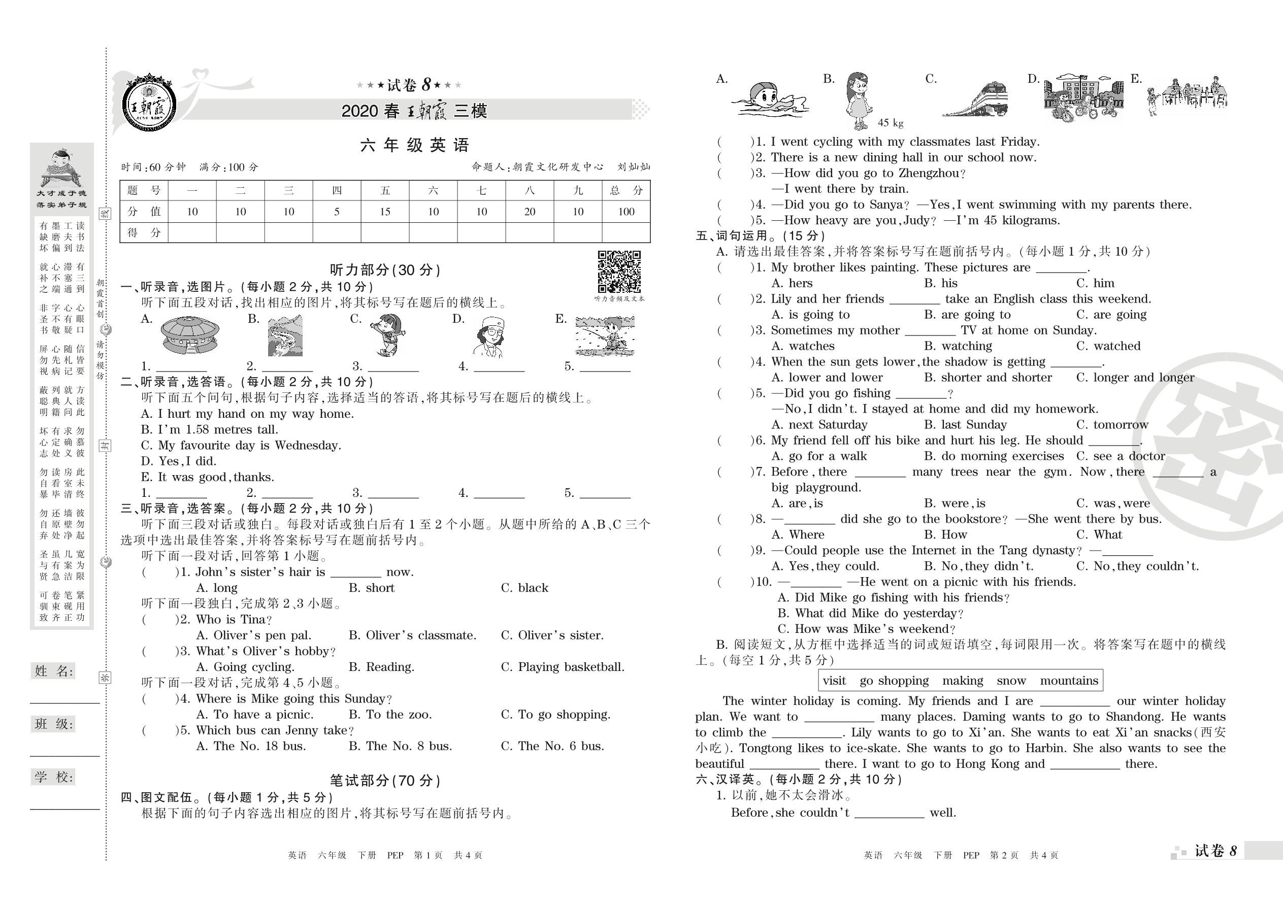 王朝霞期末模拟卷六年级下册英语(PEP版)_R210807162108【8】