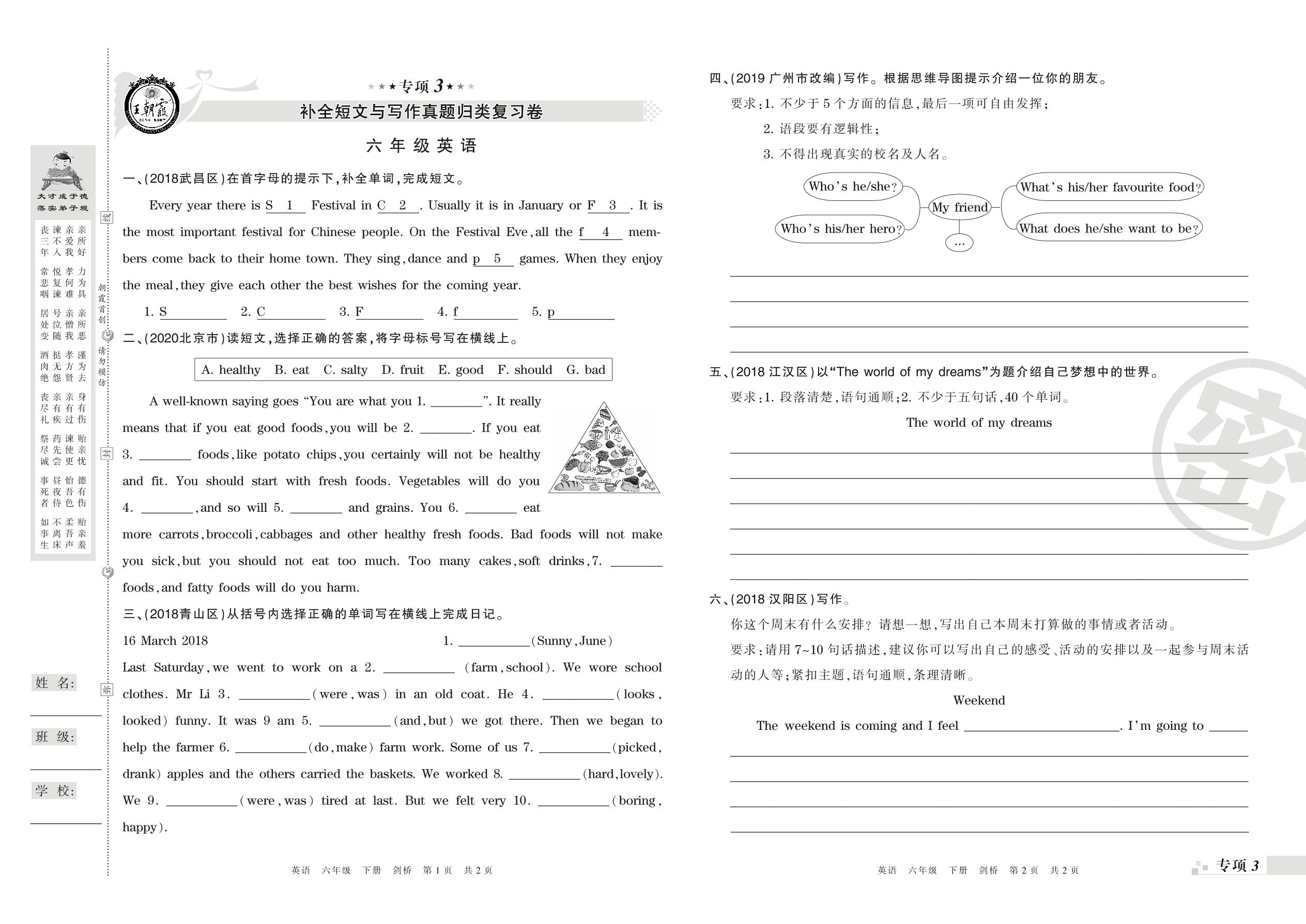 王朝霞期末专项卷——补全短文与写作真题归类复习卷、新颖题速递:绘本阅读六年级下册英语(剑桥版)_R210807162306【0】