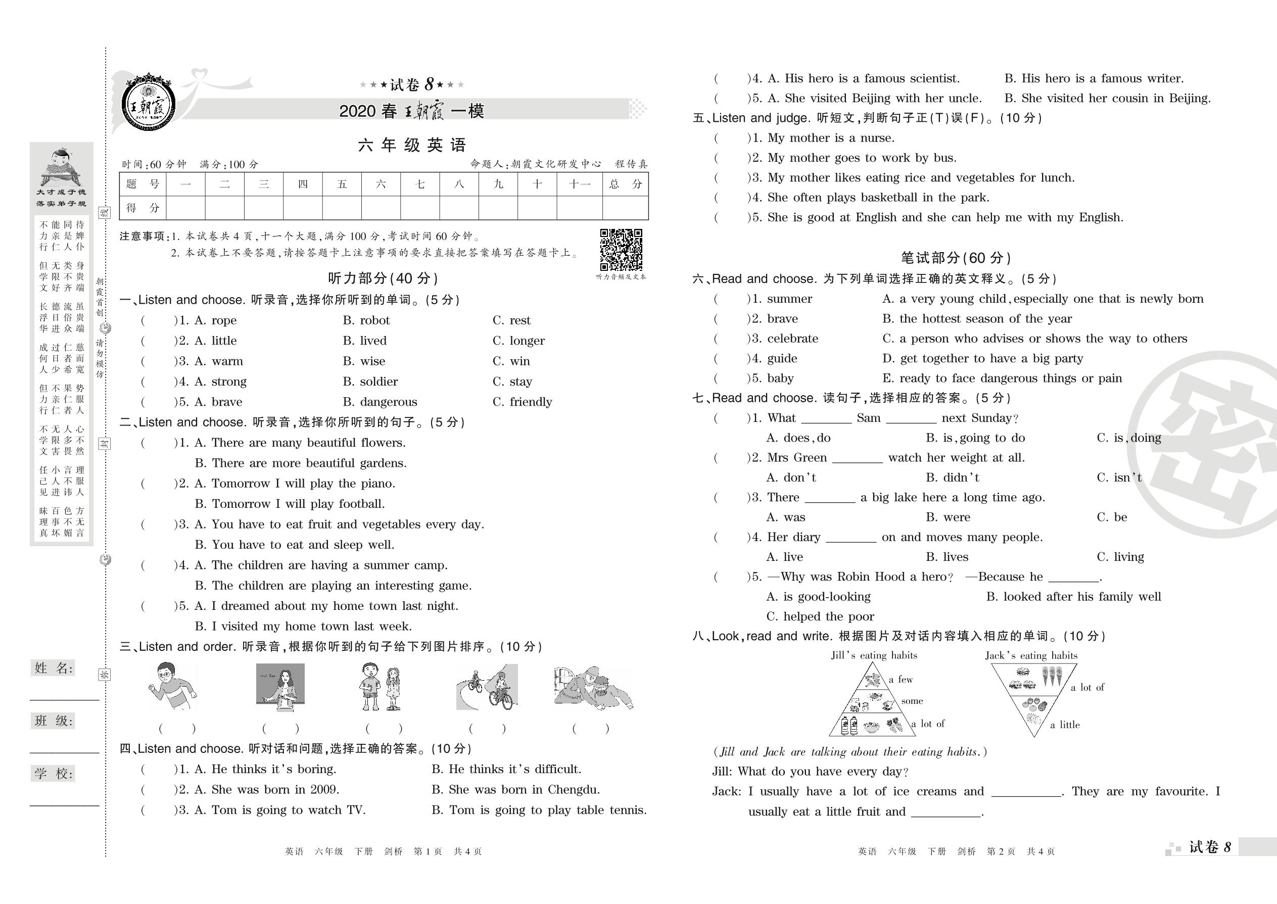 王朝霞期末模拟卷六年级下册英语(剑桥版)_R210807162346【8】