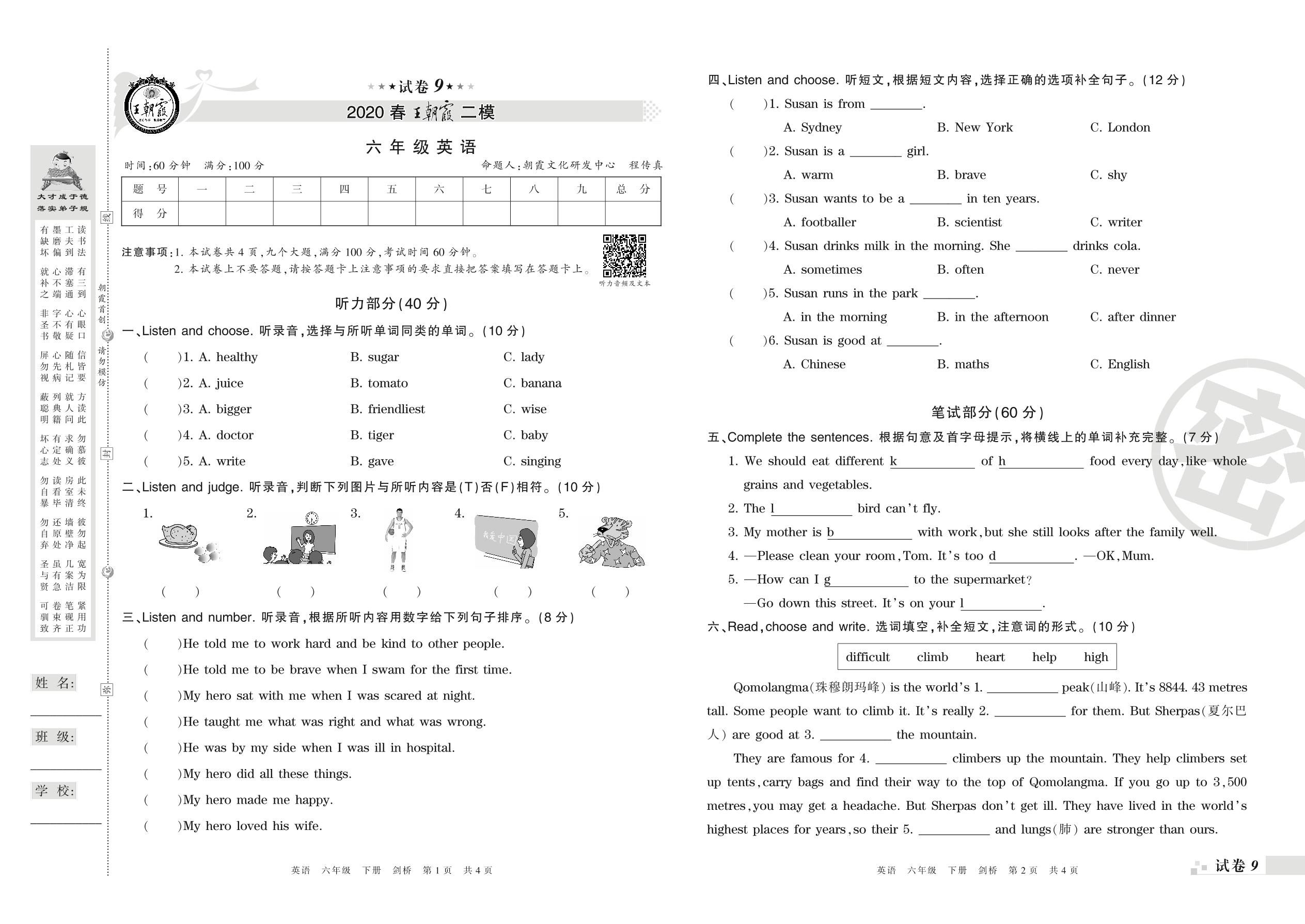 王朝霞期末模拟卷六年级下册英语(剑桥版)_R210807162400【9】