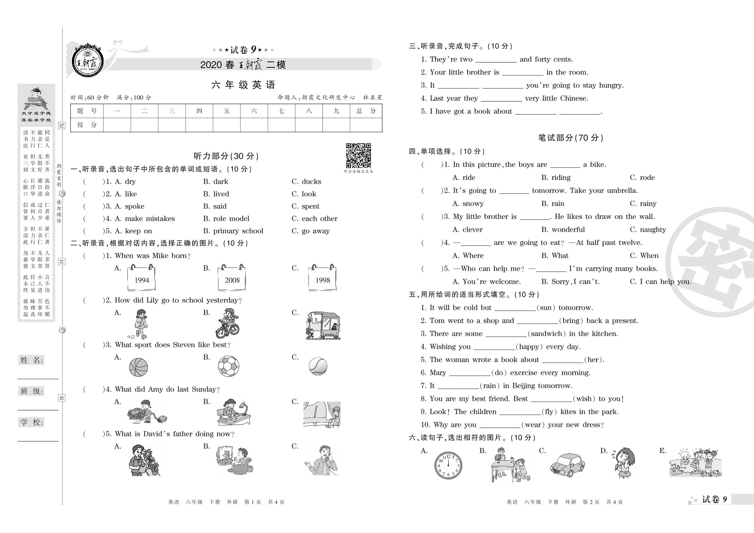 王朝霞期末模拟卷六年级下册英语(外研版)_R210807162700【9】