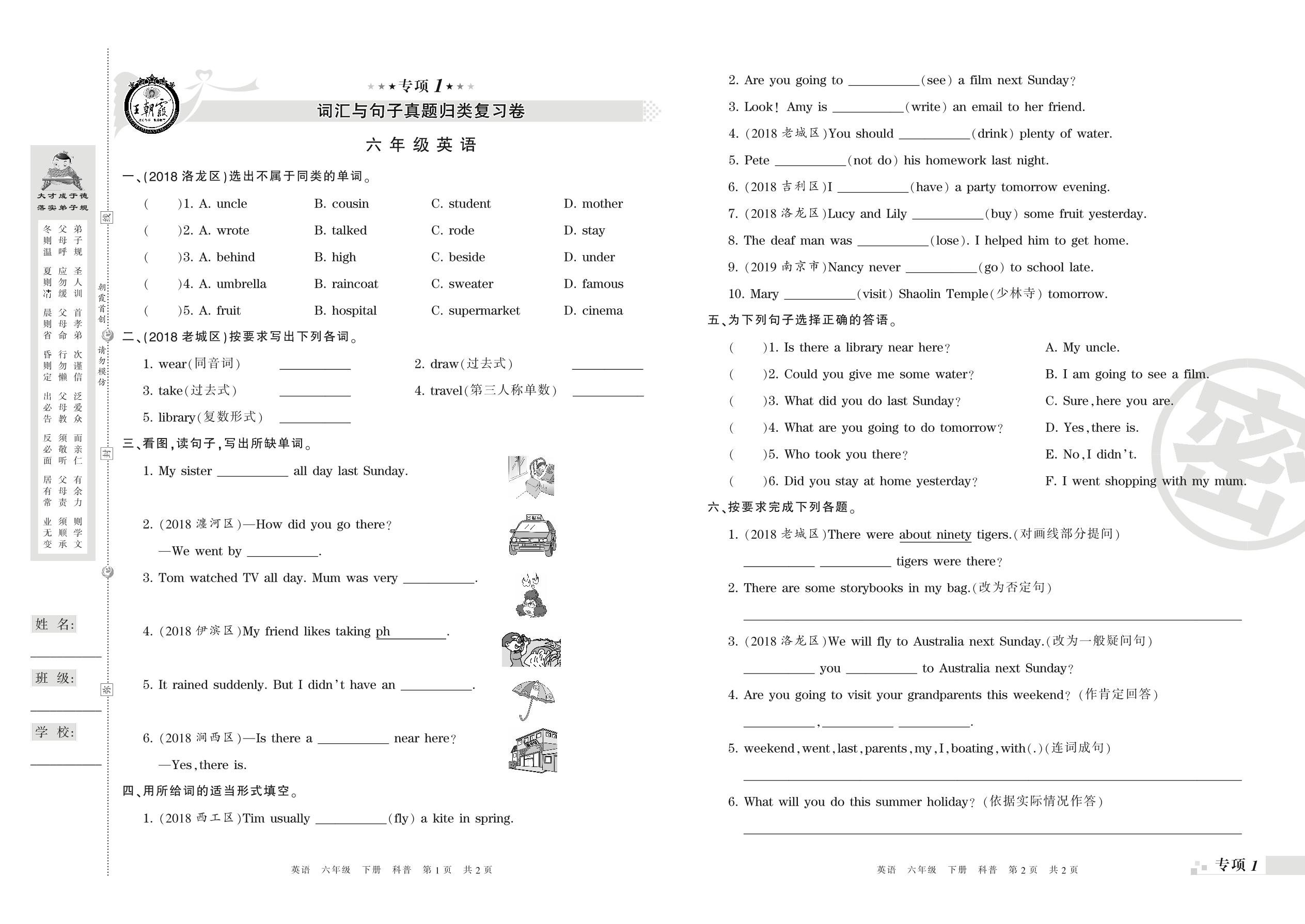 王朝霞期末专项卷——词汇与句子、阅读理解真题归类复习卷六年级下册英语(科普版)_R210807162817【0】