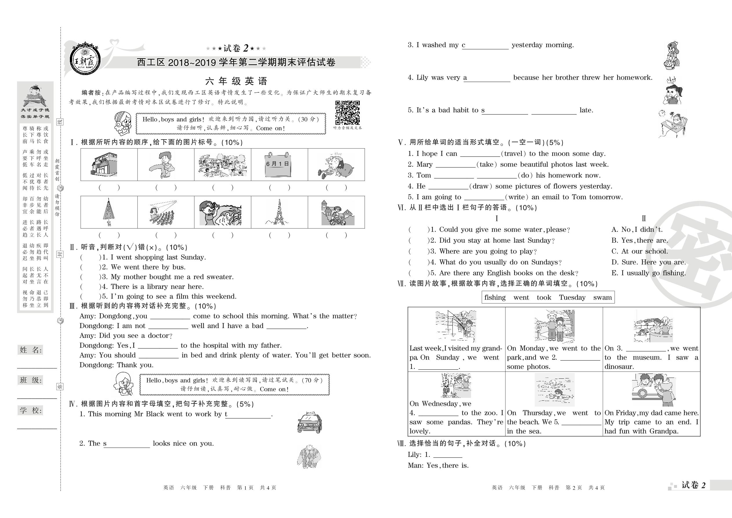 2018-2019学年第二学期洛阳市西工区六年级英语试卷(科普版)【2】