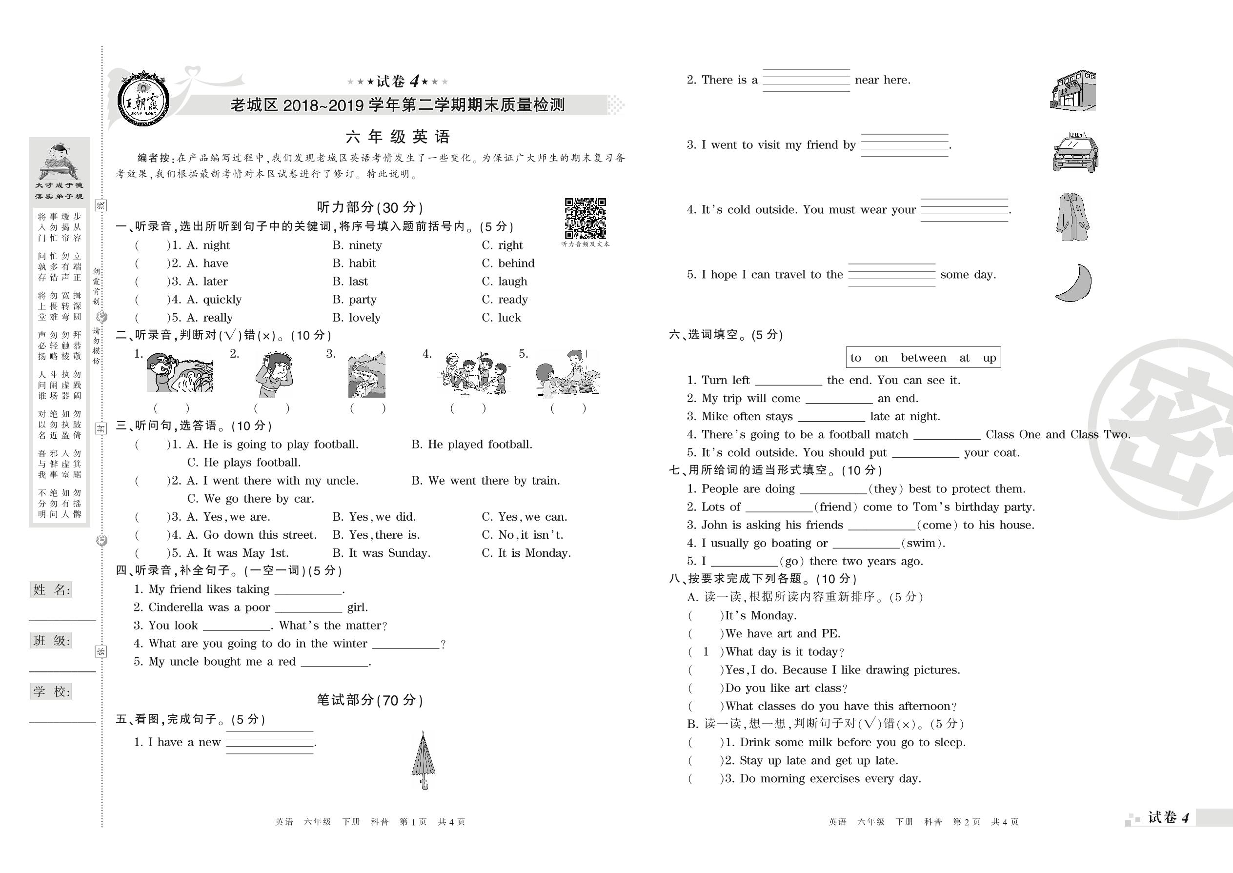 2018-2019学年第二学期洛阳市老城区六年级英语试卷(科普版)【4】