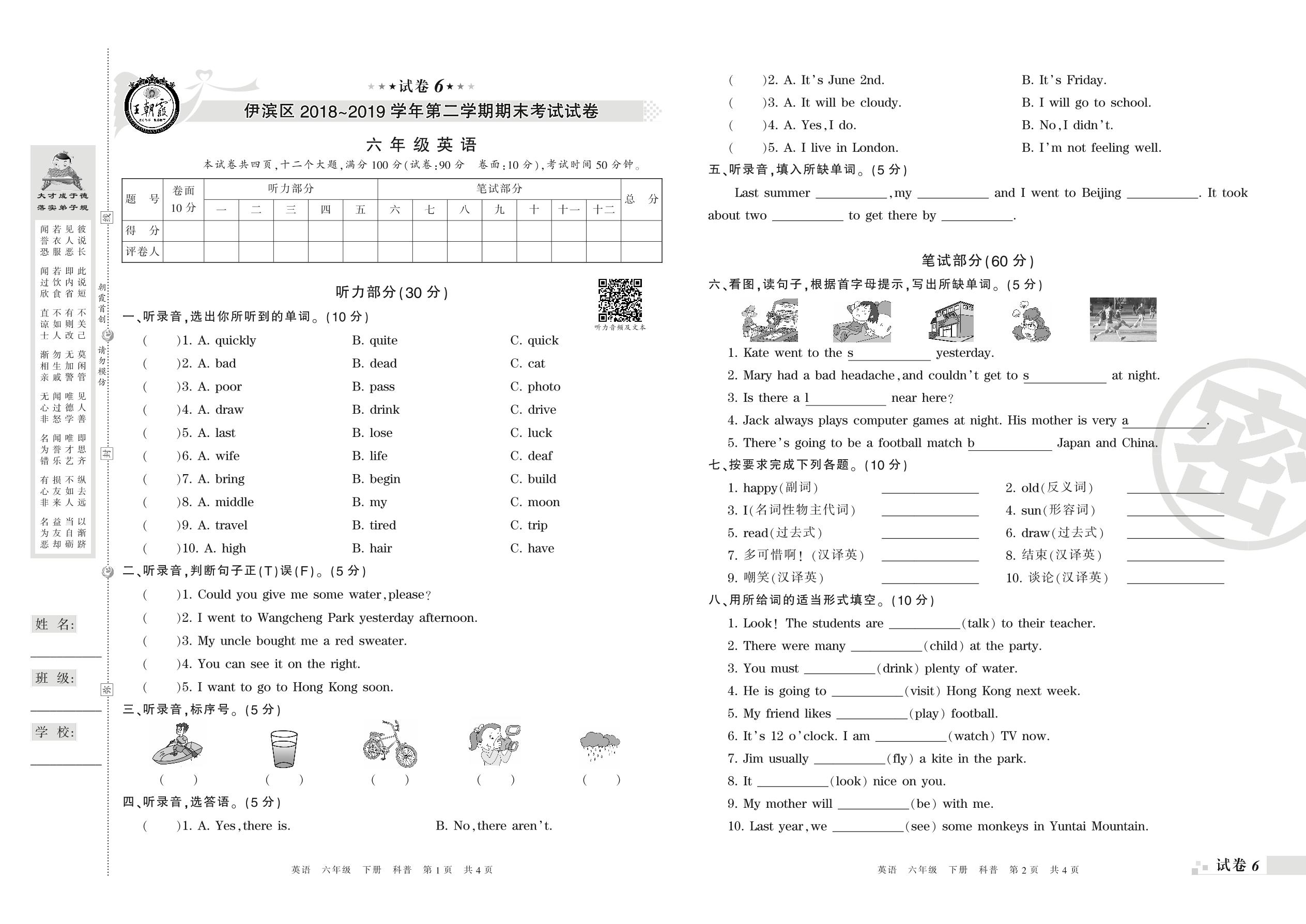 2018-2019学年第二学期洛阳市伊滨区六年级英语试卷(科普版)【6】