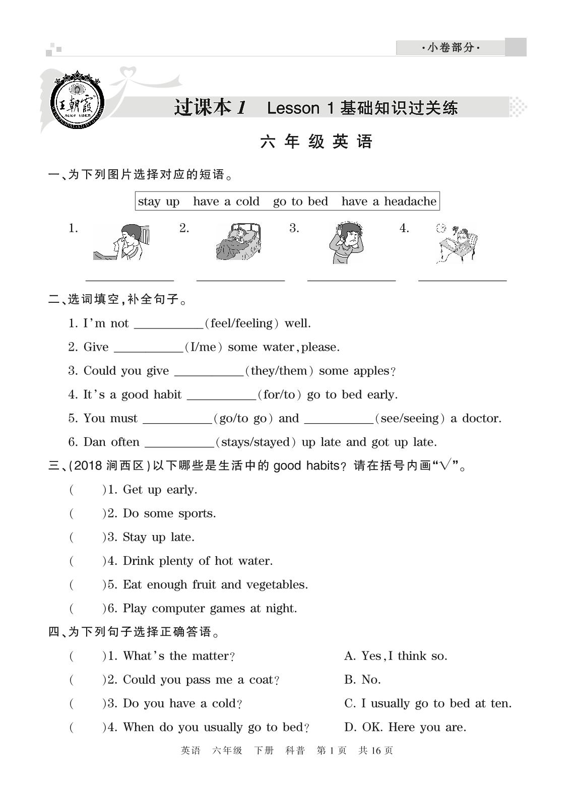 王朝霞期末过课本——基础知识过关练六年级下册英语(科普版)_R210807162949【0】